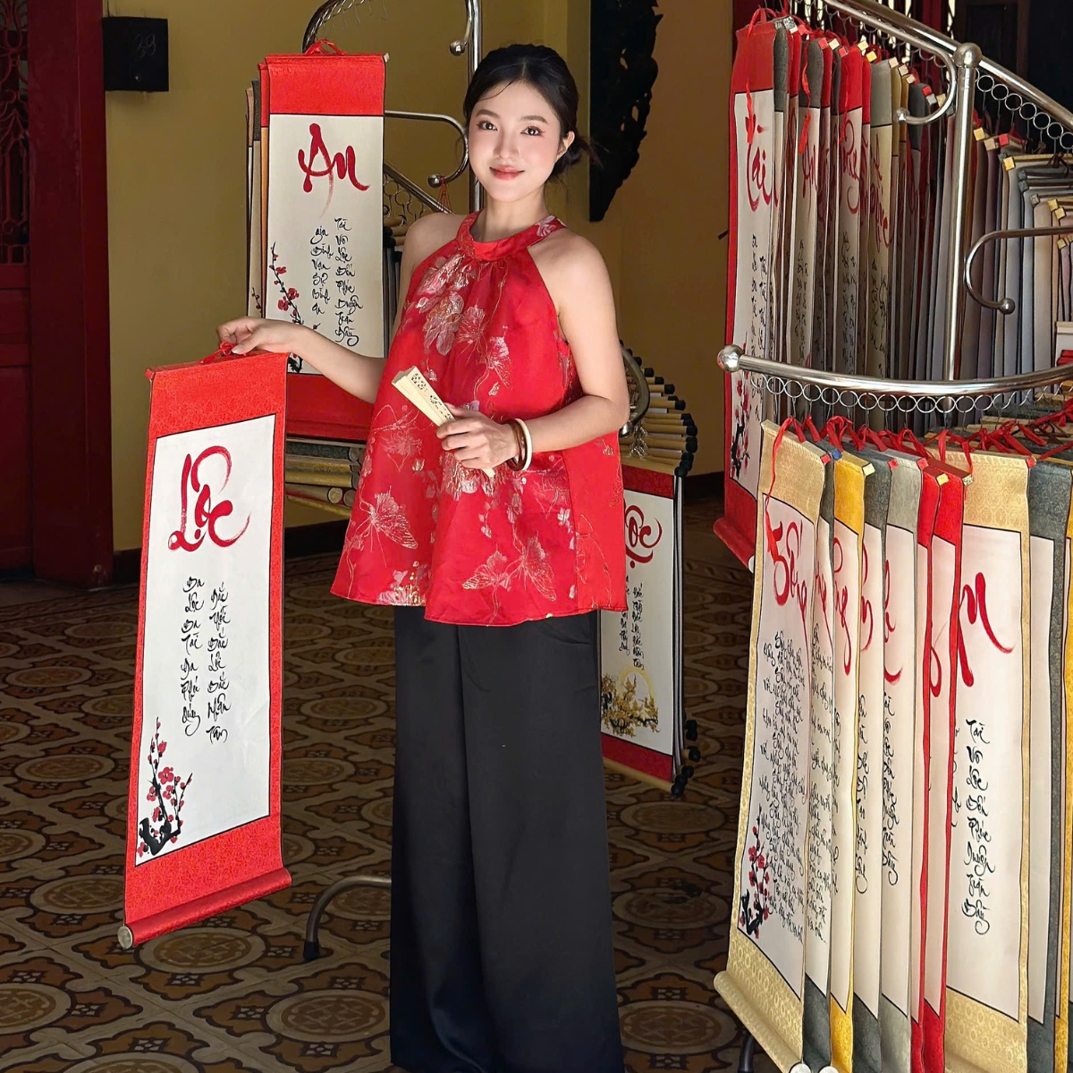 Mua tại TiktokCHI TIẾT SẢN PHẨM ✿ Sản phẩm : Set áo yếm kèm quần chất vải gấm họa tiết hoa dập nổi Tuệ Nhi Miều Est.2013 ✿ Chất liệu : Lụa Gấm Hoa ✿ Màu sắc : XANH NHẠT / ĐỎ ✿ Size : S / M ✿ Thiết kế và sản xuất : Miều Est.2013 ✿ Nơi sản xuất: Việt Nam
