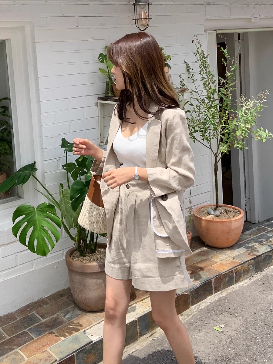 ✨Set bộ vest Balzer Linen ve vuông túi đắp Form rộng kèm quần short Haint Boutique Bv06