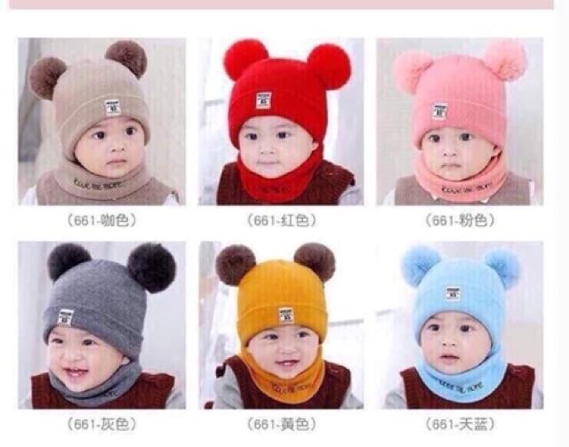 Unbox Set mũ len kèm khăn cho bé cute, dễ thương, ấm áp mùa đông