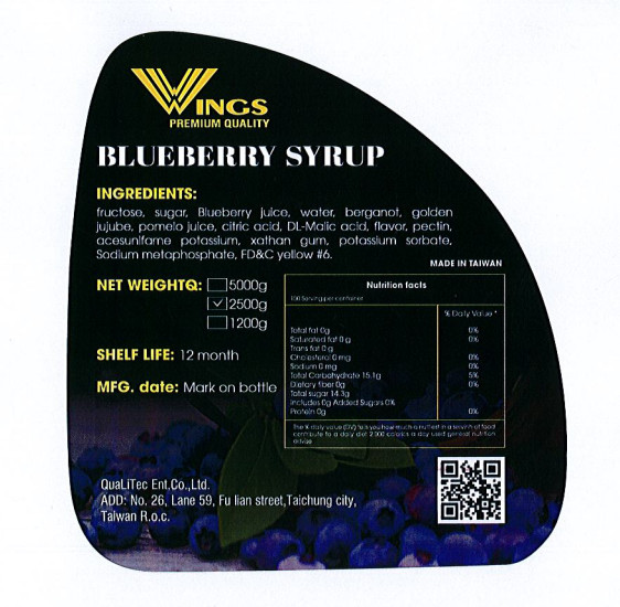 ✨Si rô hương vị việt quất Wings dùng pha chế Coffee, Iced tea, Milkshakes, Cocktails, Soda ... trọng lượng 2,5 kg