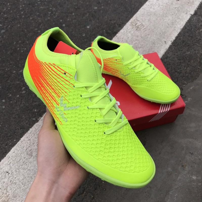Chất liệu giày làm từ da tăng cường khả năng chống thấm, thoáng khí Phần đế giày đá bóng bằng chất liệu 100% cao su, mềm mại khi sử dụng, đế có rãnh chống trơn,
