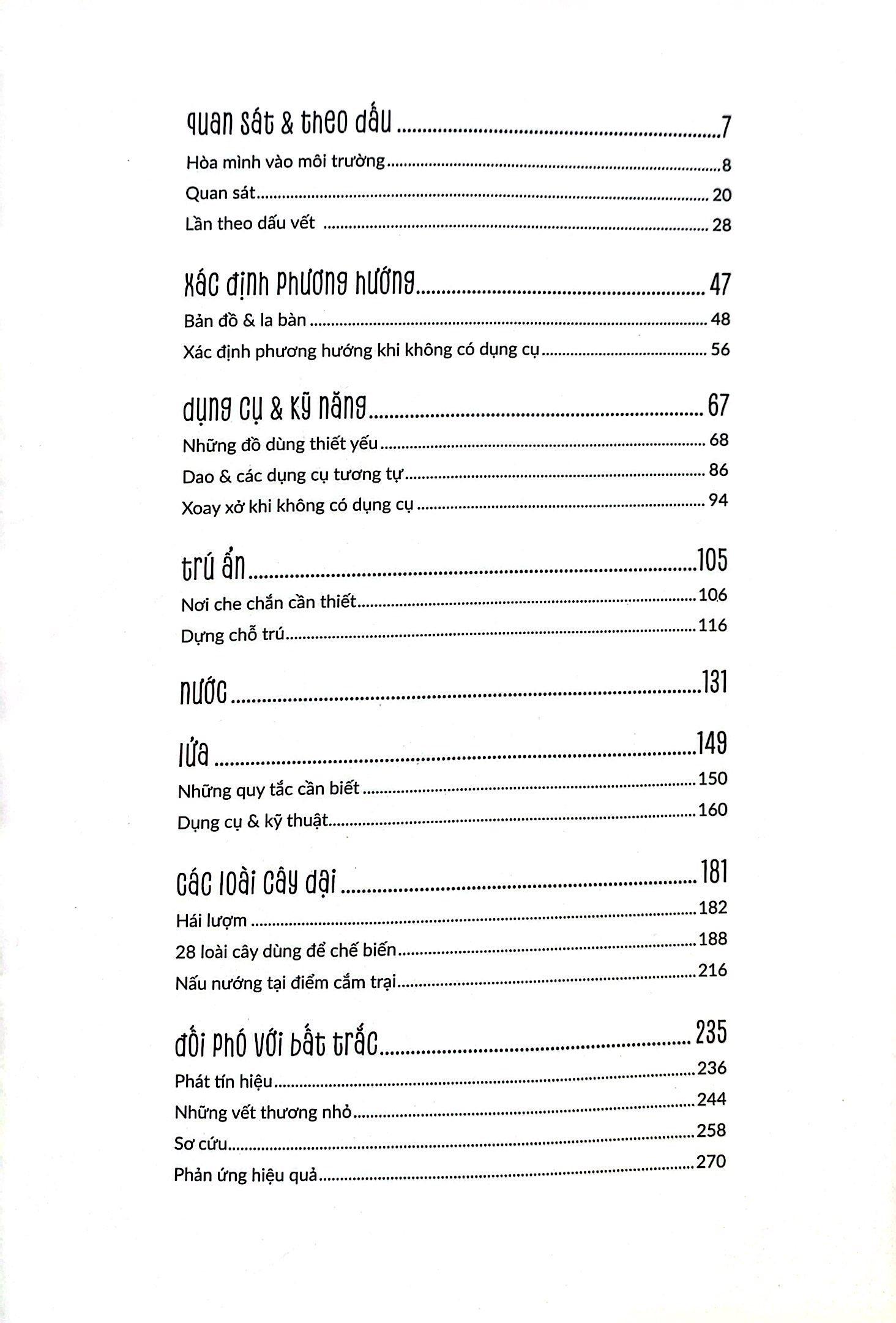 Sinh Tồn Giữa Thiên Nhiên Cẩm Nang Toàn Tập Về Dã Ngoại Trong xã hội bộn bề ngày nay, hòa m.ình vào thiên nhiên, trở về với không gian nguyên sơ và yên bình đang dần trở thành xu hướng được nhiều người quan tâm. Ta hoàn toàn có thể sống và tận hưởng thiên nhiên cùng cả gia đình một cách an toàn, miễn là ta chuẩn bị hành trang đúng cách. Nicolas Clémendot, giảng viên dạy kỹ năng sinh tồn và bushcraft với hơn 10 năm kinh nghiệm và Émilie Cuissard, nhà thực vật học đam mê nghiên cứu các loài cây dại, sẽ đưa bạn rời khỏi những con đường mòn, tiến sâu vào rừng núi để trải nghiệm một chuyến đi có 1-0-2! Bạn sẽ tìm thấy trong cuốn sách với những minh họa tỉ mỉ bằng hình ảnh và tranh vẽ này: