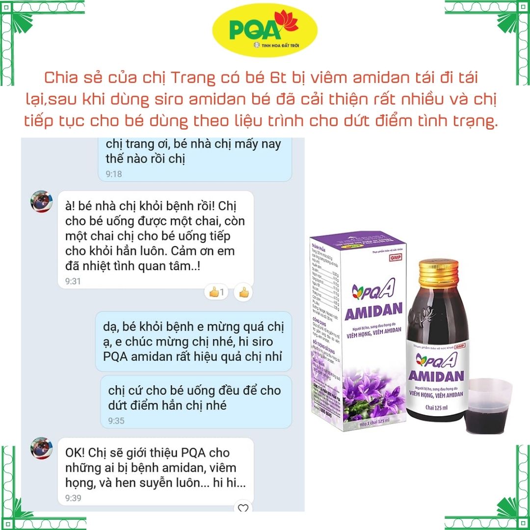 Siro PQA Amidan dùng cho Người bị ho, sưng đau họng do viêm họng, viêm amidan. Tư vấn: 096.557.4568