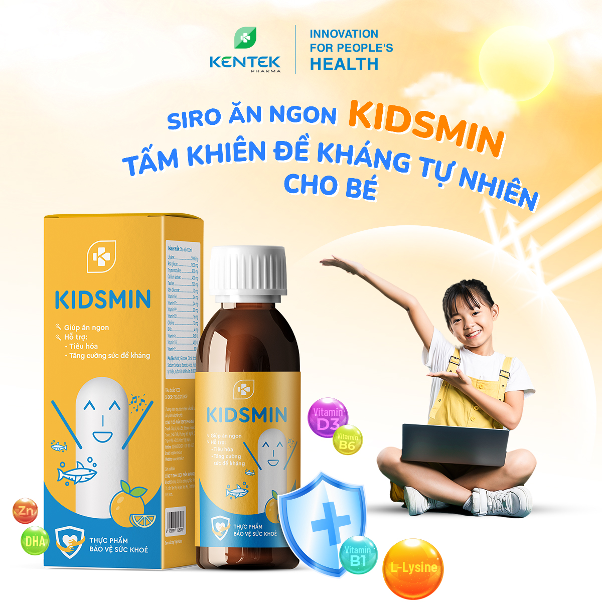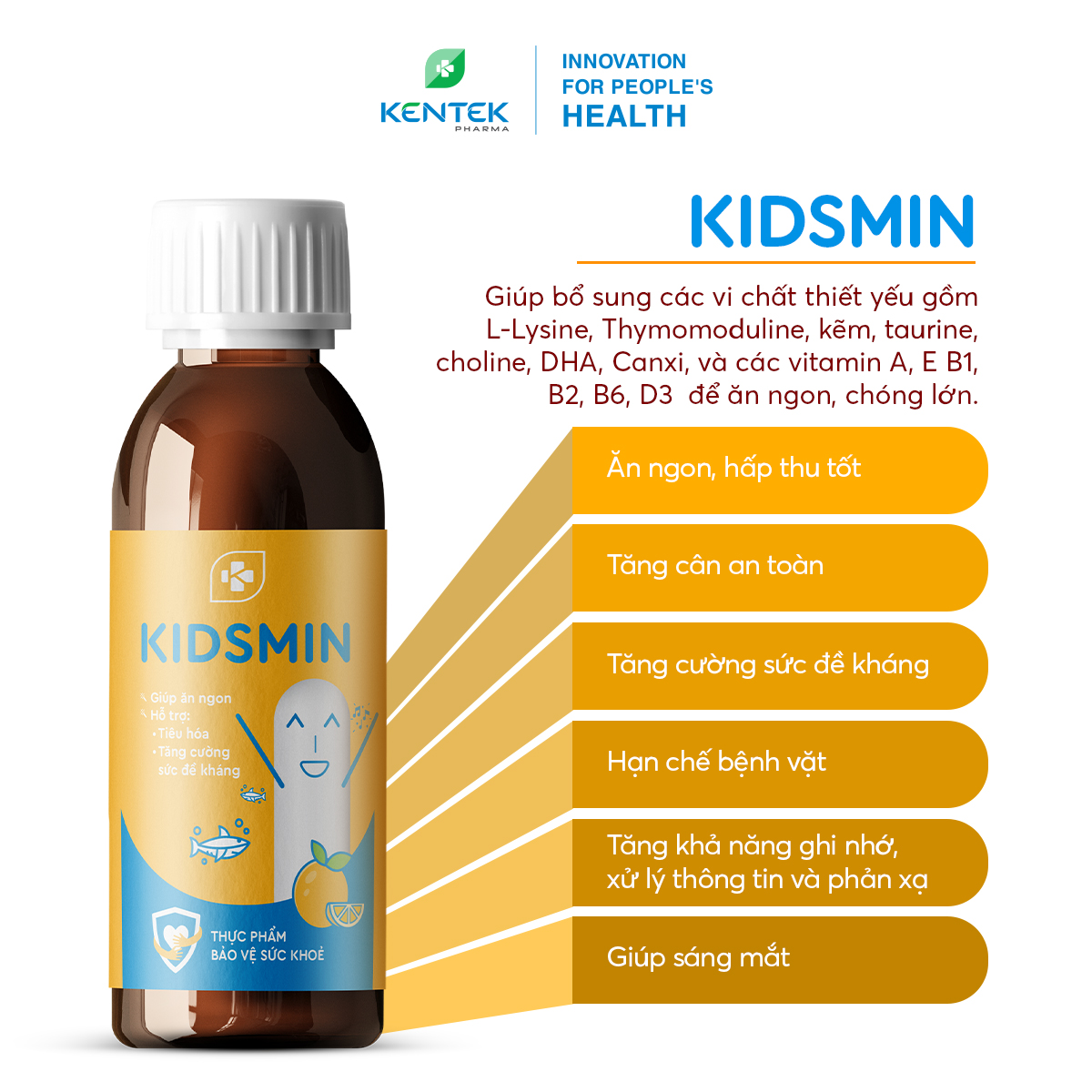 ✨Siro ăn ngon, tăng cân an toàn, phát triển thể chất và trí não cho trẻ suy dinh dưỡng, đề kháng yếu KIDSMIN | Kentek Pharma | Chai 100ml