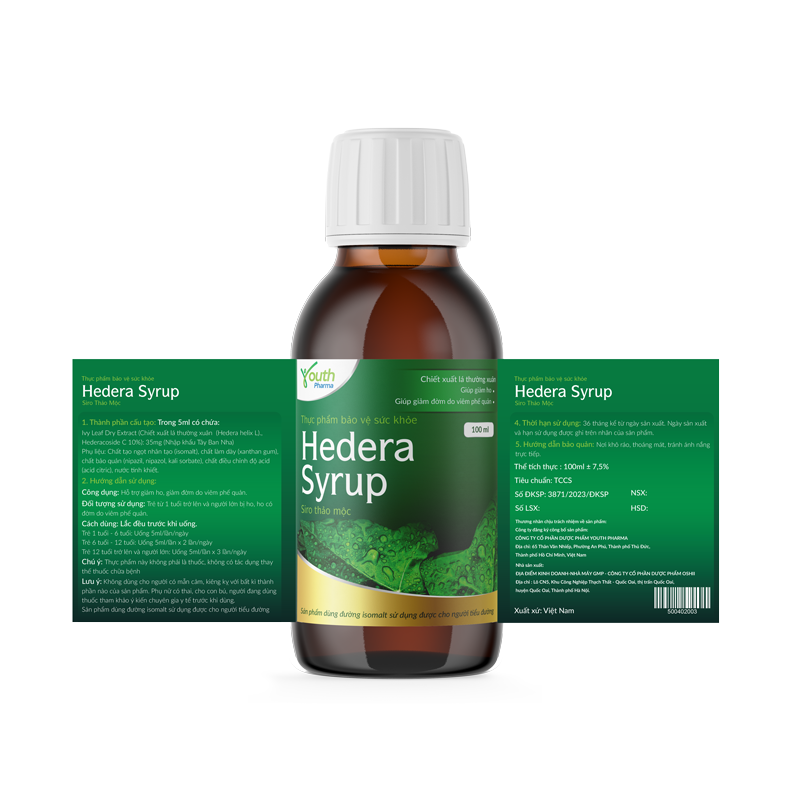 ✨Siro Hedera Syrup Youth Pharma hỗ trợ giảm ho, giảm đờm. Chai 100ml