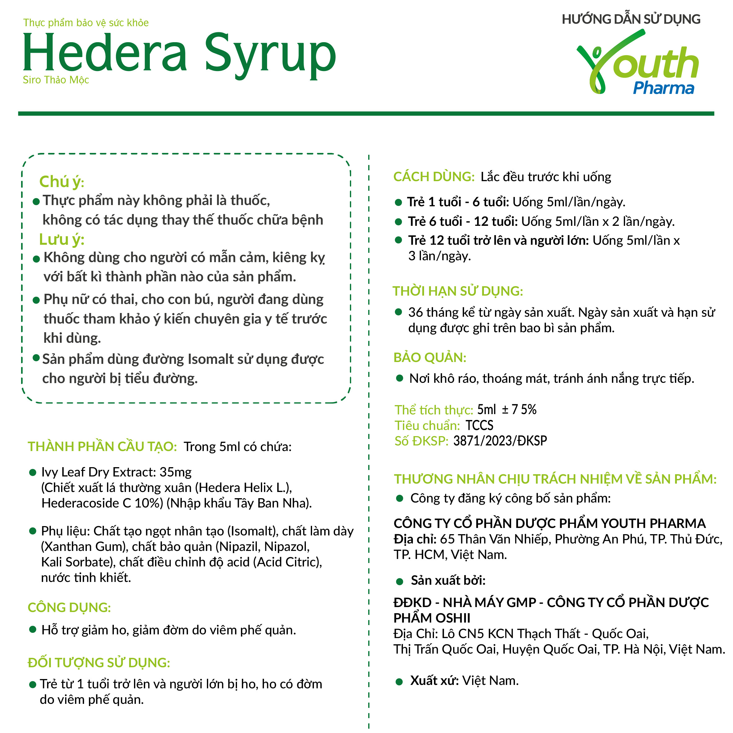 ✨Siro Hedera Syrup Youth Pharma hỗ trợ giảm ho, giảm đờm. Hộp 20 gói (5ml/gói)
