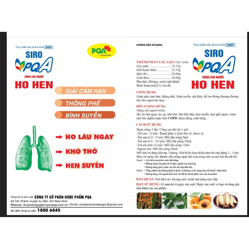 ✨Siro Ho Hen PQA Hỗ Trợ Thông Thoáng Đường Thở Cho Người Hen Suyễn Hộp 125ml