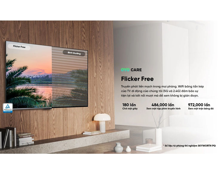 - Swaiot: Tính năng Swaiot cho phép bạn kết nối và điều khiển các thiết bị trong nhà thông qua kết nối không dây, mang đến trải nghiệm sống động và tiện ích trong cuộc sống thông minh. Màn hình QLED nâng cao trải nghiệm màu sắc trên tivi Coocaa 65Y73 Pro Coocaa 65Y73 Pro là một tivi phiên bản 65 inch đặc biệt, được trang bị màn hình Eco-QLED, một công nghệ tiên tiến trong dòng QED. Với hơn 1 tỷ điểm ảnh, Coocaa 65Y73 Pro tái hiện màu sắc tự nhiên và sống động, mang đến cho người dùng trải nghiệm xem nội dung giải trí tuyệt vời. Sự kết hợp giữa kích thước lớn và công nghệ màn hình tiên tiến giúp tivi này tạo ra hình ảnh chi tiết và chân thực, đem lại cho người dùng những trải nghiệm giải trí đáng nhớ. Công nghệ QLED của tivi Coocaa 65Y73 Pro đã cải thiện đáng kể chất lượng hiển thị của màu da nhân vật. Nó cung cấp cho người dùng một trải nghiệm tuyệt vời với màu sắc trung thực và sắc nét. Tivi Coocaa 65Y73 Pro có thể tái hiện chính xác và tinh tế các chi tiết về màu da của nhân vật trên màn hình, trở thành một "bậc thầy trang điểm" cho người dùng. Đồng thời, độ phân giải tivi 4K Ultra HD giúp cho tivi nhà bạn trở nên sắc nét hơn rất nhiều. Kích thước tivi lớn lên tới 65 inch làm trải nghiệm nội dung giải trí của bạn trở nên trọn vẹn hơn rất nhiều. Công nghệ Chameleon Extreme 2.0 tái tạo hình ảnh bằng AI trên Coocaa 65Y73 Pro Tivi Coocaa 65Y73 Pro được trang bị công nghệ Chameleon Extreme 2.0 tái tạo hình ảnh với sự hỗ trợ của trí tuệ nhân tạo AI. Để đạt được chất lượng hình ảnh tối ưu, đội ngũ kỹ sư của Coocaa đã phải xử lý một lượng lớn dữ liệu bao gồm 10T video, 10GB hình ảnh và sử dụng 7 mô hình điều chỉnh khác nhau. Kết quả của công việc này là tivi Coocaa 65Y73 Pro đã có thể cung cấp chất lượng hình ảnh tốt nhất và tối ưu hóa trải nghiệm của người dùng. Chip Chameleon Extreme 2.0 tích hợp trong TV với khả năng tự điều chỉnh chất lượng hình ảnh qua AI Chất lượng hình ảnh được cải thiện với công nghệ HDR trên Coocaa 65Y73 Pro HDR 10+ và Dolby Vision của tivi Coocaa 65Y73 Pro đã giúp cải thiện đáng kể độ tương phản của hình ảnh hiển thị. Khi sử dụng máy thu hình, người dùng có thể thưởng thức nội dung với độ sâu và màu sắc tươi sáng hơn bao giờ hết. Công nghệ HDR cải thiện độ tương phản của hình ảnh hiển thị trên Coocaa 65Y73 Pro Tivi Coocaa 65Y73 Pro cung cấp cho người yêu điện ảnh trải nghiệm tuyệt vời hơn bằng chế độ Filmmaker Mode. Chế độ này sẽ loại bỏ các bộ lọc không cần thiết, để người xem có thể nhìn thấy nội dung theo cách chính xác mà đạo diễn định nghĩa. Với Filmmaker Mode, người xem sẽ có thể hiểu được thông điệp và cảm nhận của tác phẩm một cách chính xác nhất. Người yêu điện ảnh có thể thưởng thức trải nghiệm phim trọn vẹn với Filmmaker Mode Thư viện nội dung đa dạng ở Google TV trên Coocaa 65Y73 Pro Tivi Coocaa 65Y73 Pro sử dụng hệ điều hành Google TV (Android TV 11) để cung cấp cho người dùng truy cập vào hơn 8000 ứng dụng khác nhau. Trong đó, có nhiều ứng dụng phổ biến tại Việt Nam như Netflix, YouTube, FPT Play, K+, Clip TV, VieON... Đặc biệt, khi mua tivi Coocaa, bạn sẽ được tặng gói gắn kết K+ trong vòng 1 năm, gói ClipTV trong vòng 1 năm và gói FPT Play 4K VOD trong vòng 3 tháng. Điều này có nghĩa là bạn sẽ được thưởng thức các nội dung giải trí đặc sắc ngay sau khi mua TV. Những tính năng đặc sắc của tivi Coocaa 65Y73 Pro TV Coocaa 65Y73 Pro cung cấp nhiều tính năng khác nhau dựa trên nền tảng Google TV, bao gồm: Module Daily Family giúp tạo sự thuận lợi khi sử dụng tivi cho các thành viên trong gia đình; Kids Care giúp quản lý và kiểm soát nội dung mà trẻ em có thể truy cập trên tivi; Google Duo cho phép trò chuyện qua màn ảnh rộng; Google Photos giúp lưu giữ những kỷ niệm đáng nhớ; và Chromecast built-in cho phép truyền hình ảnh từ điện thoại lên màn hình tivi. Bảo vệ sức khỏe mắt với Eye Care trên Coocaa 65Y73 Pro Coocaa đặt sức khỏe của các thành viên trong gia đình bạn lên hàng đầu với công nghệ Eye Care. Tivi của hãng đã được trang bị chức năng giảm tình trạng nhấp nháy màn hình (Flicker Free) và hạn chế ánh sáng xanh trong dải tần số gây hại cho mắt (Low Blue Light). Những tính năng này sẽ giúp giảm tình trạng mỏi mắt, gây hại cho mắt của người dùng TV. Tivi Coocaa có khả năng điều chỉnh ánh sáng và tự động giảm âm lượng vào ban đêm, giúp giữ cho môi trường gia đình yên tĩnh và không làm ảnh hưởng đến giấc ngủ của các thành viên trong gia đình. Điều khiển từ xa kháng khuẩn trên tivi Coocaa 65Y73 Pro Điều khiển từ xa của tivi Coocaa 65Y73 Pro được thiết kế bằng vật liệu kháng khuẩn cao cấp. Được kiểm định bởi SGS, tỷ lệ kháng khuẩn của remote này lên tới 99%, đảm bảo an toàn cho người sử dụng trong môi trường gia đình. Bạn có thể yên tâm sử dụng remote này mà không lo lây nhiễm vi khuẩn hay mầm bệnh. Trải n