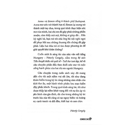 Tác phẩm nằm trong Bộ sách thiếu nhi quốc tế – Tuổi thơ tươi đẹp, là sáng tác của nhà văn nổi tiếng người Hungary – Péterfy Gergely, kể về câu chuyện phấn đấu theo đuổi ước mơ của hai chị em Anna và Simon sống ở thành phố Budapest.