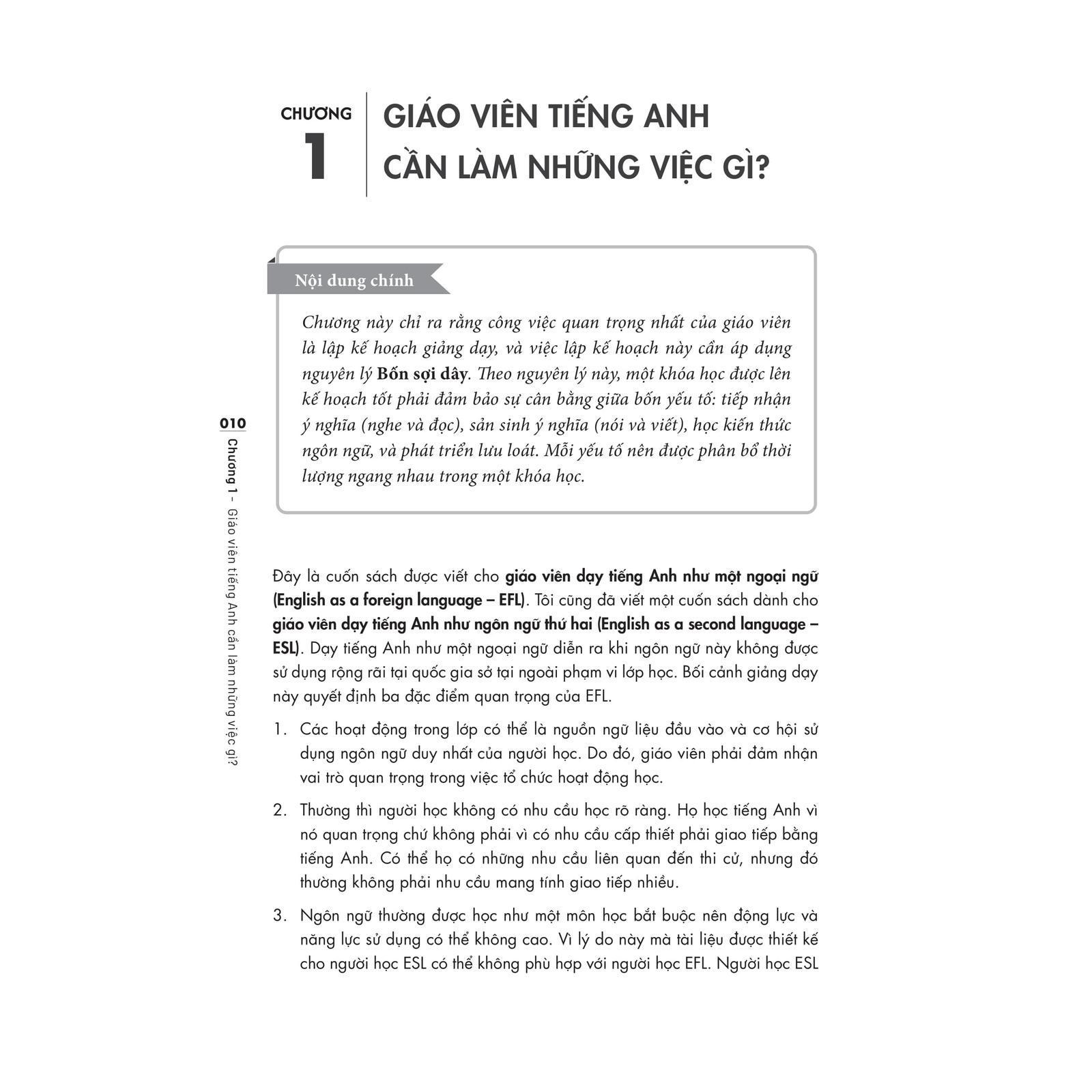 Cuốn sách cung cấp những kiến thức cốt lõi và kỹ thuật giảng dạy thiết yếu mà mỗi giáo viên EFL cần biết, là những nội dung bao quát nhiều khía cạnh quan trọng của việc giảng dạy như: