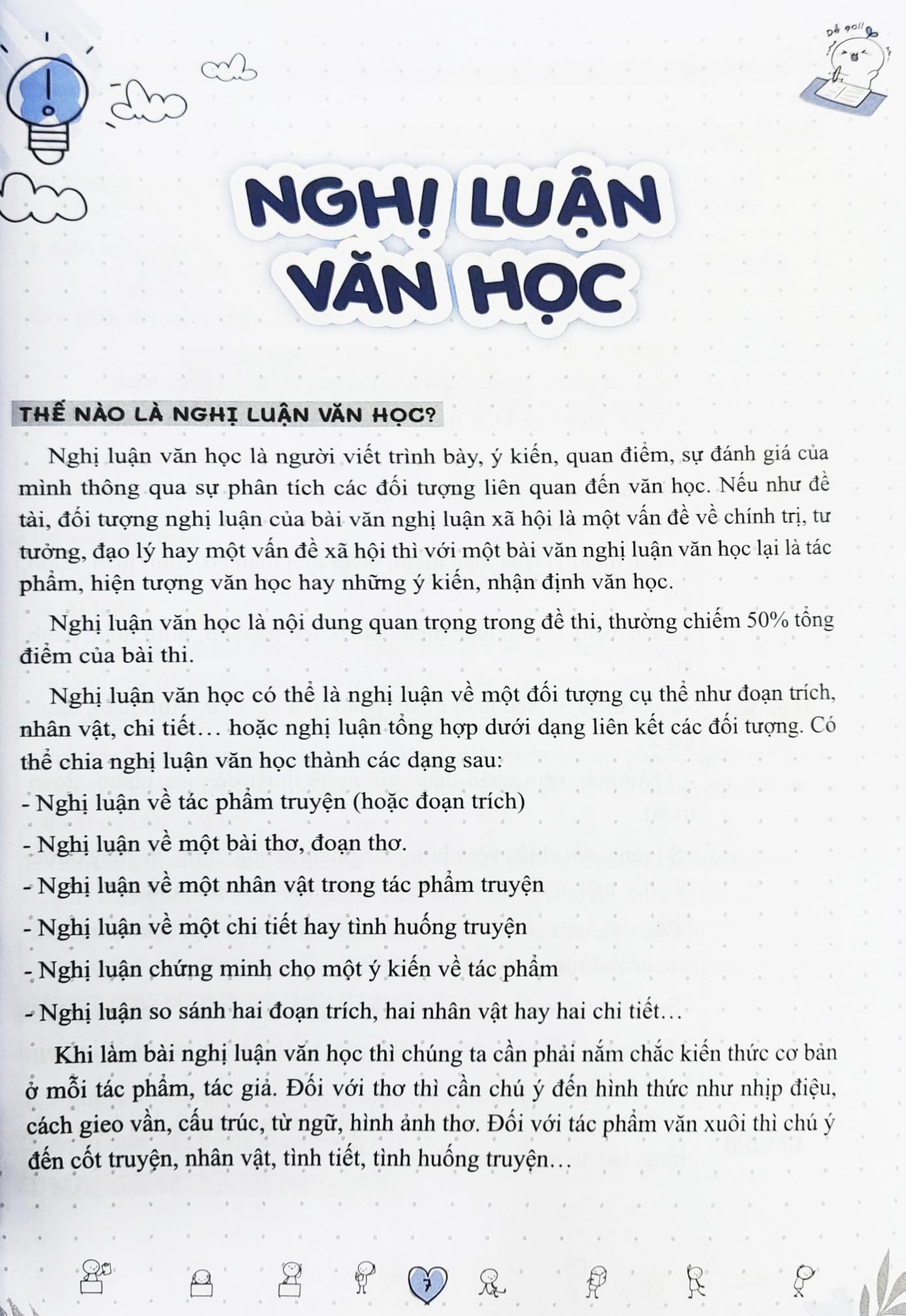 - Sách tổng hợp đầy đủ và chi tiết các dạng bài nghị luận, thơ, truyện, nghị luận so sánh và nghị luận về một ý kiến văn học.