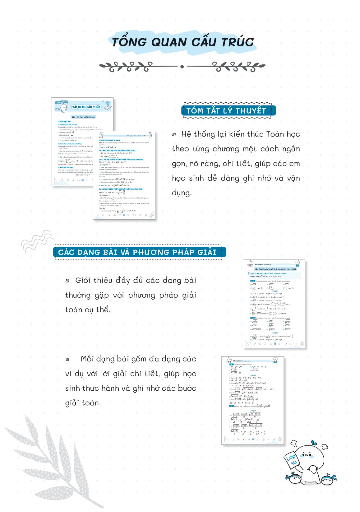 Sổ tay cung cấp đầy đủ các dạng bài thường gặp trong kỳ thi vào lớp 10 môn toán. Mỗi dạng bài đi kèm với phương pháp giải cụ thể, giúp bạn hiểu rõ cách giải từng bài tập và áp dụng vào thực hành. Không còn loay hoay mất thời gian tìm kiếm lời giải, bạn sẽ có công thức cho mọi dạng bài xuất hiện trong đề thi.