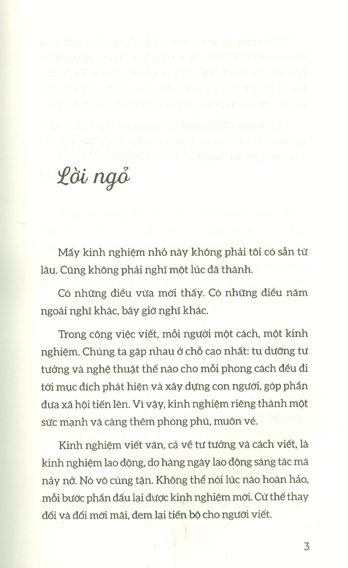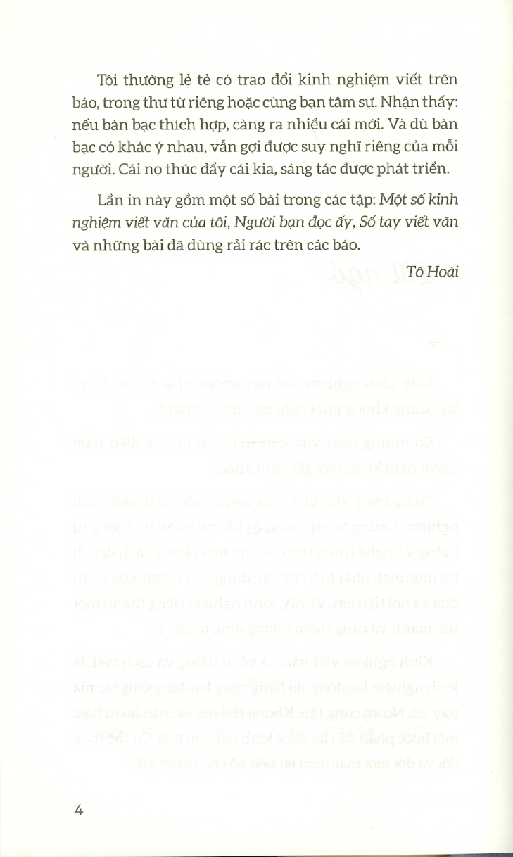 Đây là quyển sách thiết yếu dành cho mọi thế hệ nhà văn, dù trẻ hay già. Trong quyển sách, tác giả Anne Lamott đã truyền đạt tất cả những kinh nghiệm của mình trên