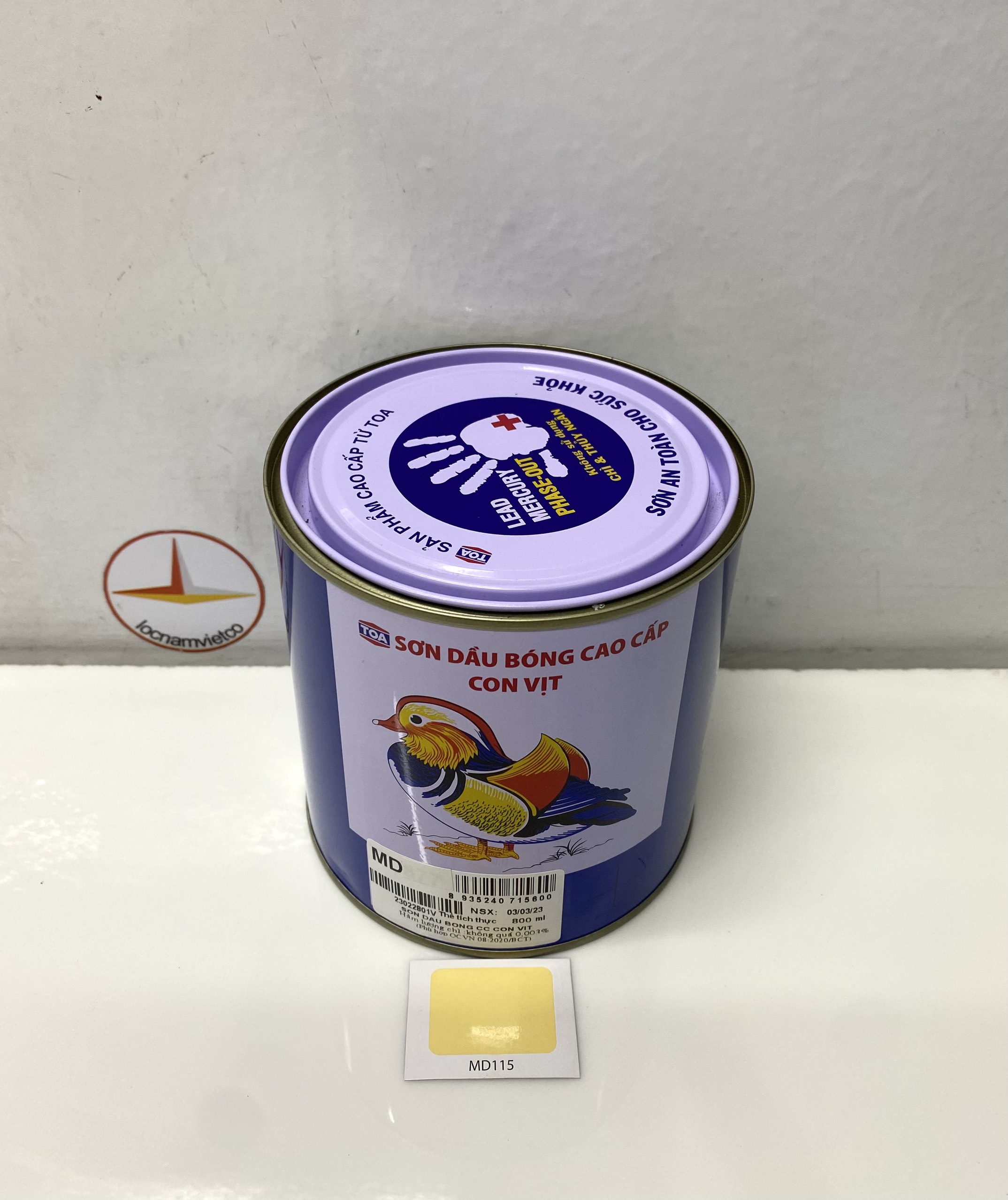 Mua tại TiktokSơn dầu cao cấp Toa hiệu Con Vịt màu vàng MD115_800ML Sơn dầu bóng cao cấp Con Vịt (Mandarin Duck) là loại sơn Alkyd chất lượng cao, không sử dụng Chì & Chất gây hại, là loại sơn an toàn cho sức khoẻ với các tính năng: Khô nhanh, màng sơn bóng đẹp, độ phủ cao, chống nấm mốc, màu sắc tươi đẹp.