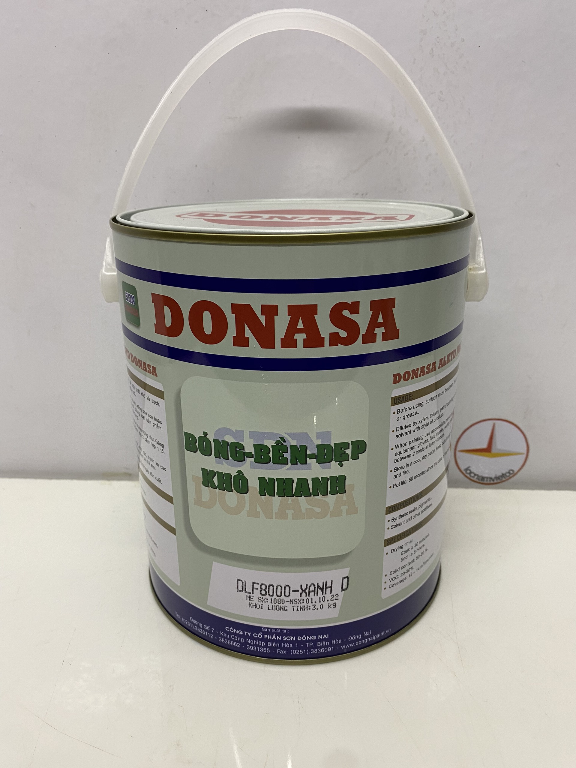 Sơn dầu Đồng Nai Donasa màu xanh 8000 3kg - Sơn Donasa Alkyd là loại Sơn phủ ngoài, trang trí cho các bề mặt gỗ và kim loại.  - Phù hợp các công trình xây dựng dân dựng,dùng sơn nội và ngoại thất. ...
