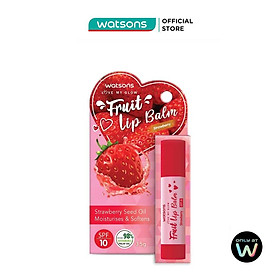 - Son Dưỡng Môi Watsons Fruity Strawberry SPF10 3.5g giúp chăm sóc môi có khả năng chống nắng.
