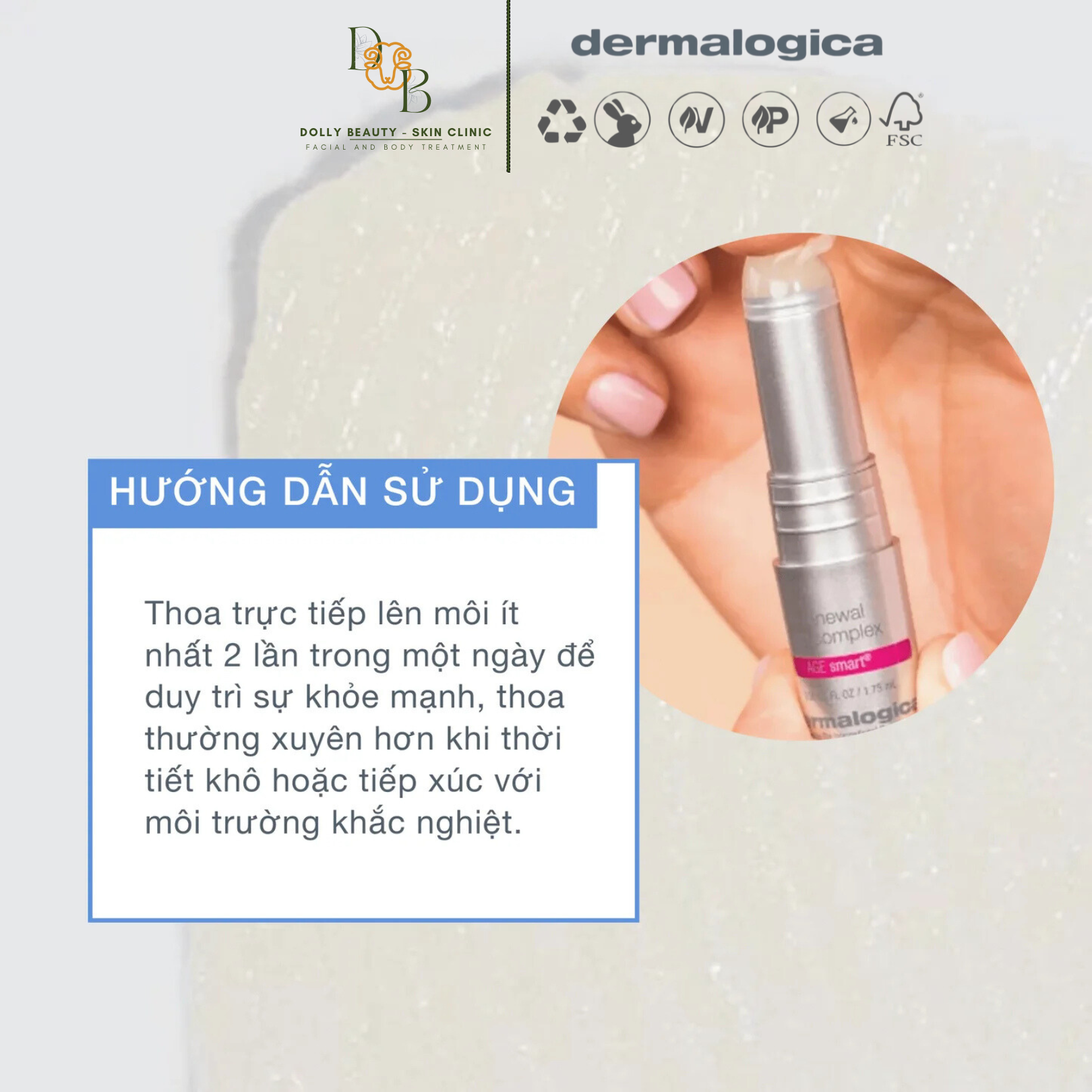 SON DƯỠNG MÔI Dermalogica - Renewal Lip Complex 1.75ml - giúp dưỡng ẩm, làm mịn & phục hồi cho môi [Chính Hãng] ● Công dụng: Giảm thiểu các vết nhăn và làm mềm sự thô ráp,