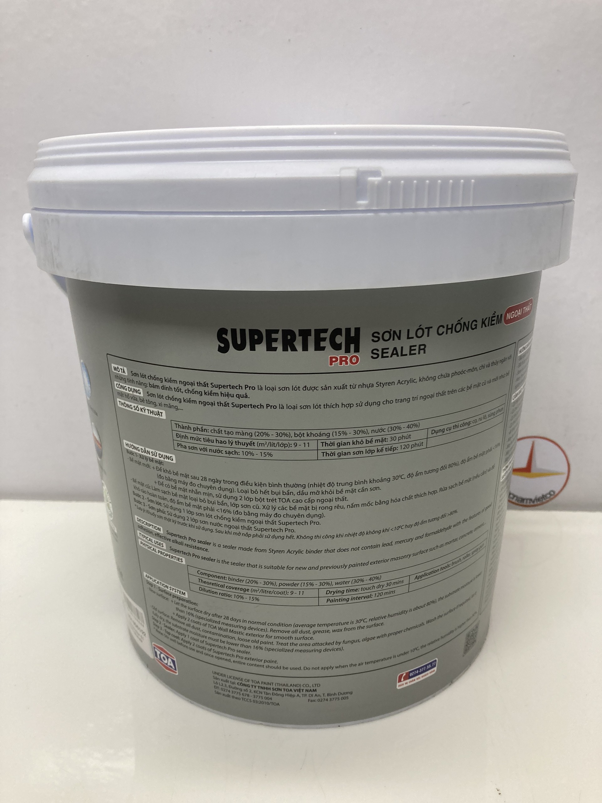 Sơn lót chống kiềm ngoại thất Toa Supertech Pro _18L Sơn lót chống kiềm ngoại thất Toa Supertech Pro là loại sơn lót được sản xuất từ nhựa Styrene Acrylic với những tính năng: độ
