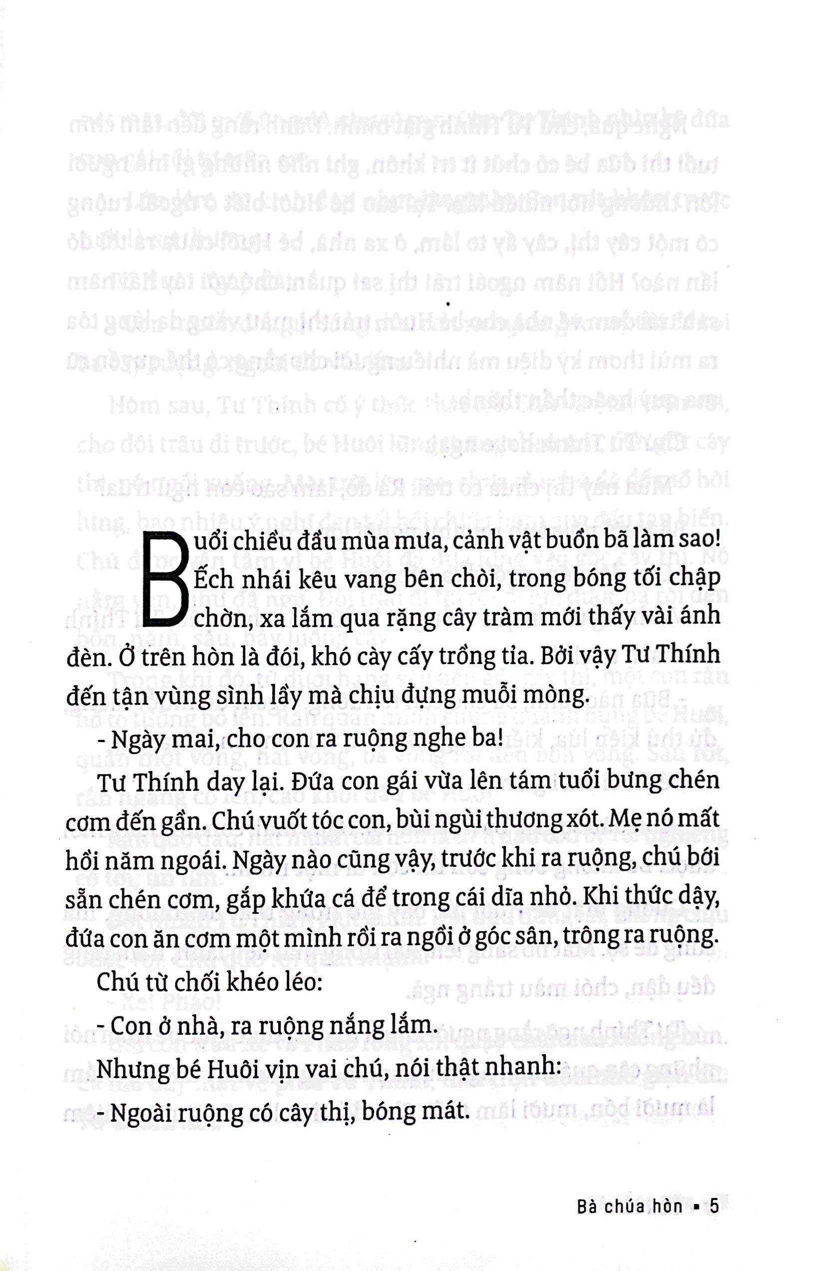 Mua tại TiktokTập sách in sang trọng, giấy trắng như là kỷ vật cho những ai yêu nhà văn Sơn Nam, giọng văn của ông già Nam Bộ này. Bà Chúa Hòn mang không khí miệt vườn, màu sắc lịch sử, và càng đọc lại càng mê.