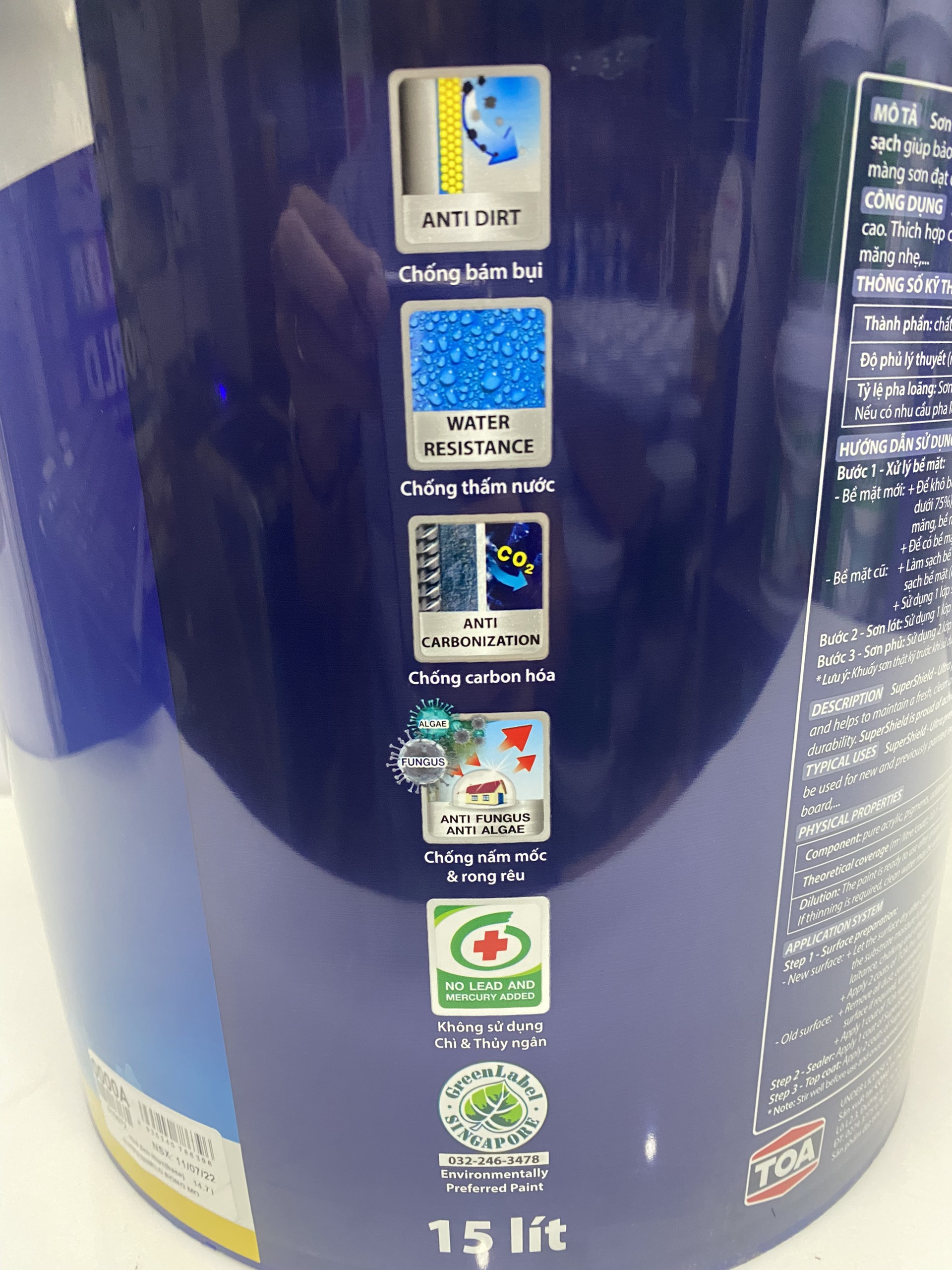 ·Hàm lượng chất hữu cơ bay hơi (VOCs): ≤ 50 g/L bề mặt bóng mờ, ≤ 70 g/L bề mặt siêu bóng