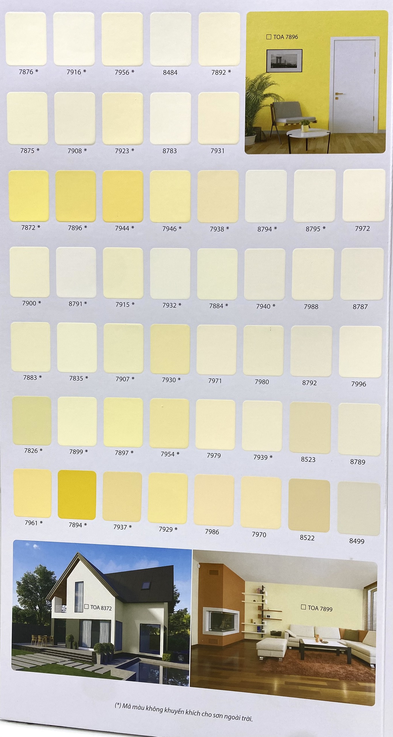 · Màu sắc: Nhiều màu Theo bảng màu và quạt màu TOA