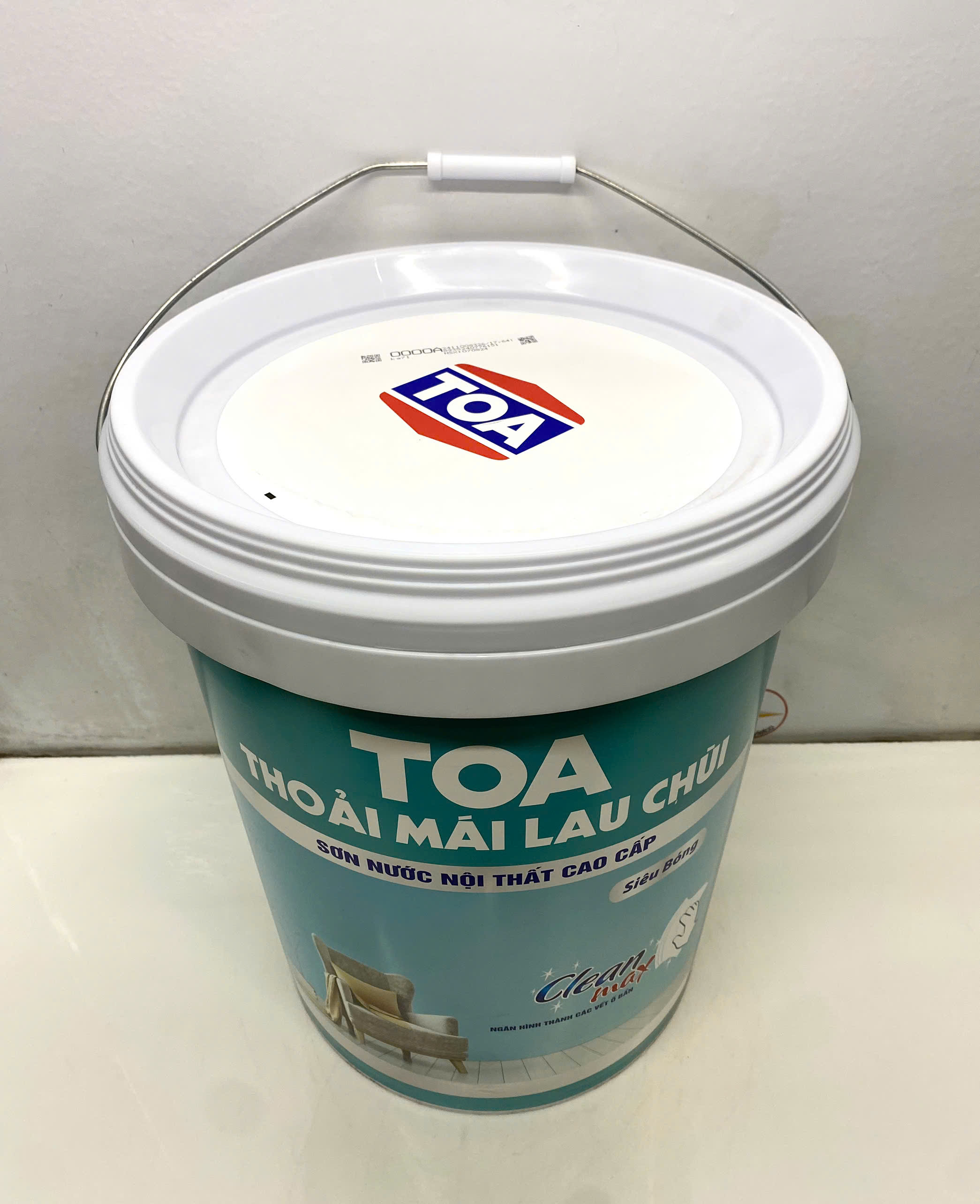 Độ phủ cao, màng sơn bóng mịn đẹp  MỤC ĐÍCH SỬ DỤNG: Sơn Nước Toathoải mái lau chùi siêu bóng  thích hợp cho việc trang trí nội thất trên các bề mặt mới và cũ như bê tông, tường xi măng, bê tông, thạch cao, gạch, ngói, tấm xi măng nhẹ, v.v...  ĐẶC TÍNH SẢN PHẨM:  - Thành phần cấu tạo: Chất tạo màng, Bột khoáng, Nước.  - Màu sắc: Nhiều màu Theo bảng màu và quạt  màu TOA  - Bề mặt hoàn thiện: Bóng  - Thể tích chất rắn: 39 ± 2 (% theo thể tích)  - Độ phủ lý thuyết: 10 – 13 m2/lít/lớp Độ phủ thực tế sẽ phụ thuộc vào khả năng dàn trải của màng sơn, độ dày màng sơn khô, bề mặt thi công, tay nghề thợ sơn và lượng sơn hao hụt thực tế khi thi công.  - Hàm lượng chất hữu cơ bay hơi (VOCs): ≤ 30 g/L  - Thời gian khô ở nhiệt độ 30 oC: khô bề mặt: 30 phút ; khô cứng:4h  - Đóng gói: 18L; 5L; 1L  - Dụng cụ: Cọ, ru-lô/con lăn,  súng phun sơn thông thường  - Tỉ lệ pha loãng: Sơn sẵn sàng sử dụng sau khi được khuấy trộn đồng nhất. Nếu có nhu cầu pha loãng, chỉ nên pha tối đa 5% với nước ngọt sạch. HƯỚNG DẪN THI CÔNG: Bước 1:  Xử lý bề mặt: Bề mặt mới: