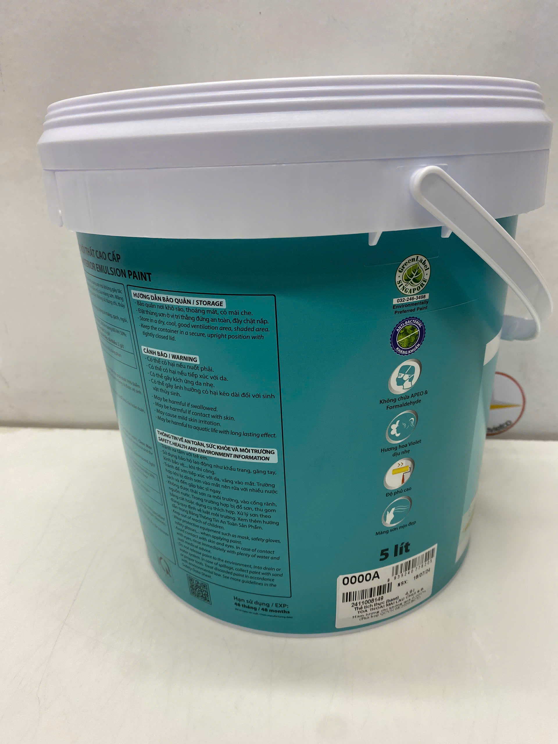 Sơn nước nội thất cao cấp Toa Nanoclean màu xanh ngọc 7508_ 5L - Được chế tạo từ nhựa acrylic nguyên chất với công nghệ tiên tiến nano giúp nhà bạn luôn an toàn, sạch sẽ