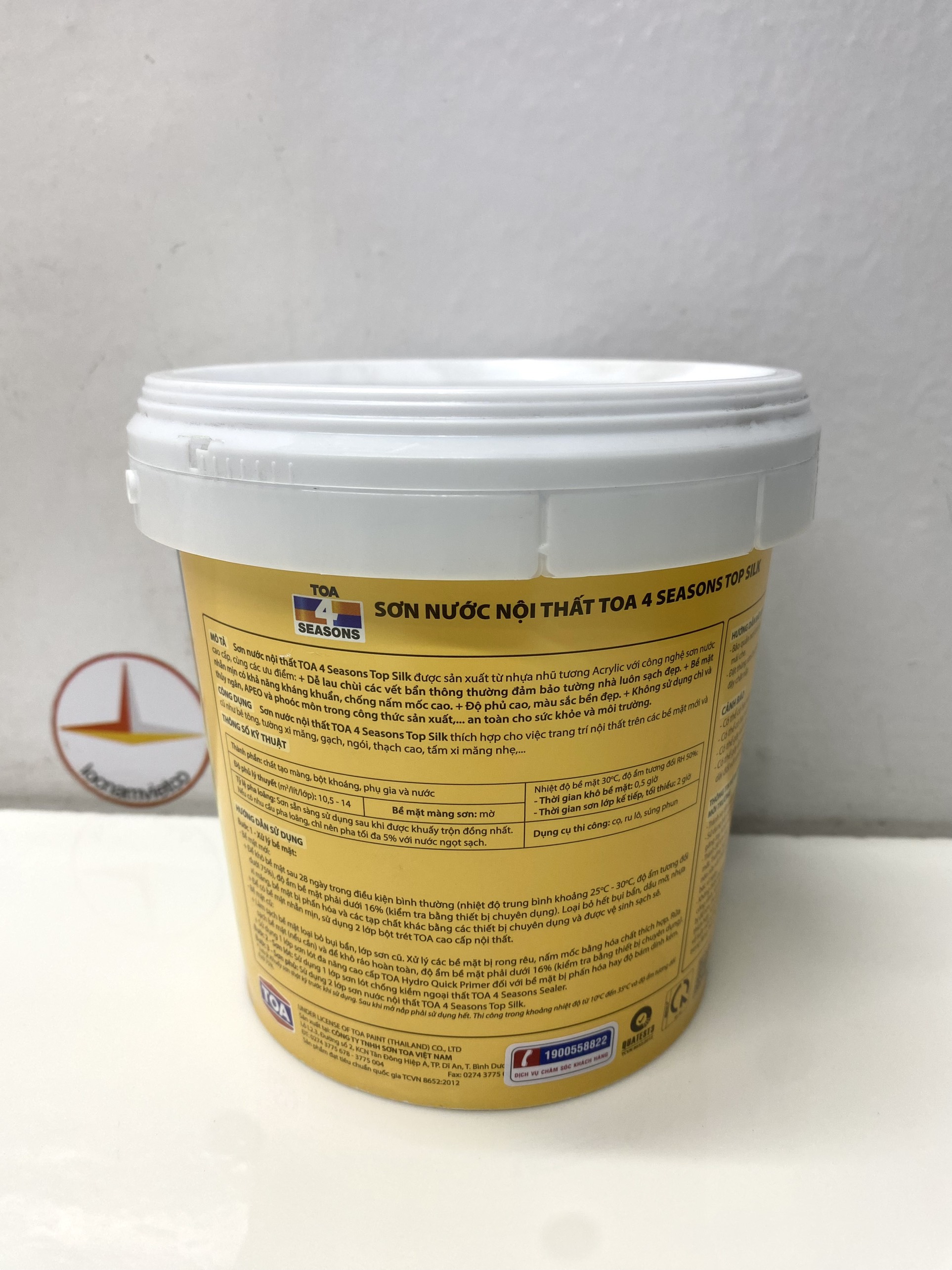 Sơn nước Toa 4 Season Top Silk dễ lau chùi nội thất NHIỀU MÀU _18L Sơn Nước nội thất Toa 4 Season top silk dễ lau chùi được chế tạo từ nhựa nhũ tương, với
