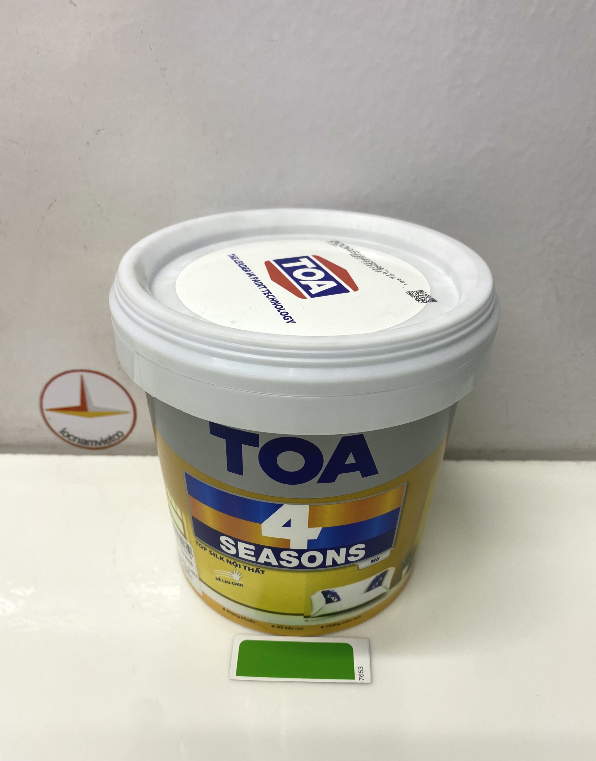 Sơn nước Toa 4 Season Top Silk dễ lau chùi nội thất màu xanh lá 7658 _18L Sơn Nước nội thất Toa 4 Season top silk dễ lau chùi được chế tạo từ nhựa nhũ