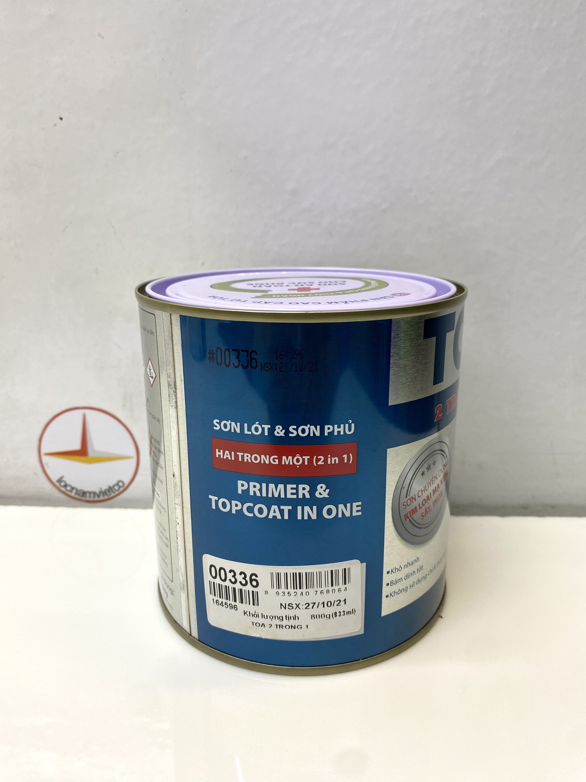 Mua tại TiktokSơn sắt mạ kẽm Toa 2 trong 1 màu đỏ 336_ 800Gr Sơn sắt mạ kẽm TOA 2 trong 1 là dòng sơn có cấu tạo chủ yếu từ nhựa Acrylic một thành phần với sự kết hợp của lớp sơn lót và sơn phủ trong cùng một một sản phẩm. Đây là loại sơn an toàn cho sức khỏe với các đặc tính nổi bật: bám dính tuyệt hảo trên nhiều bề mặt, khô nhanh, màng phim cứng chắc, không sử dụng crom, chì .