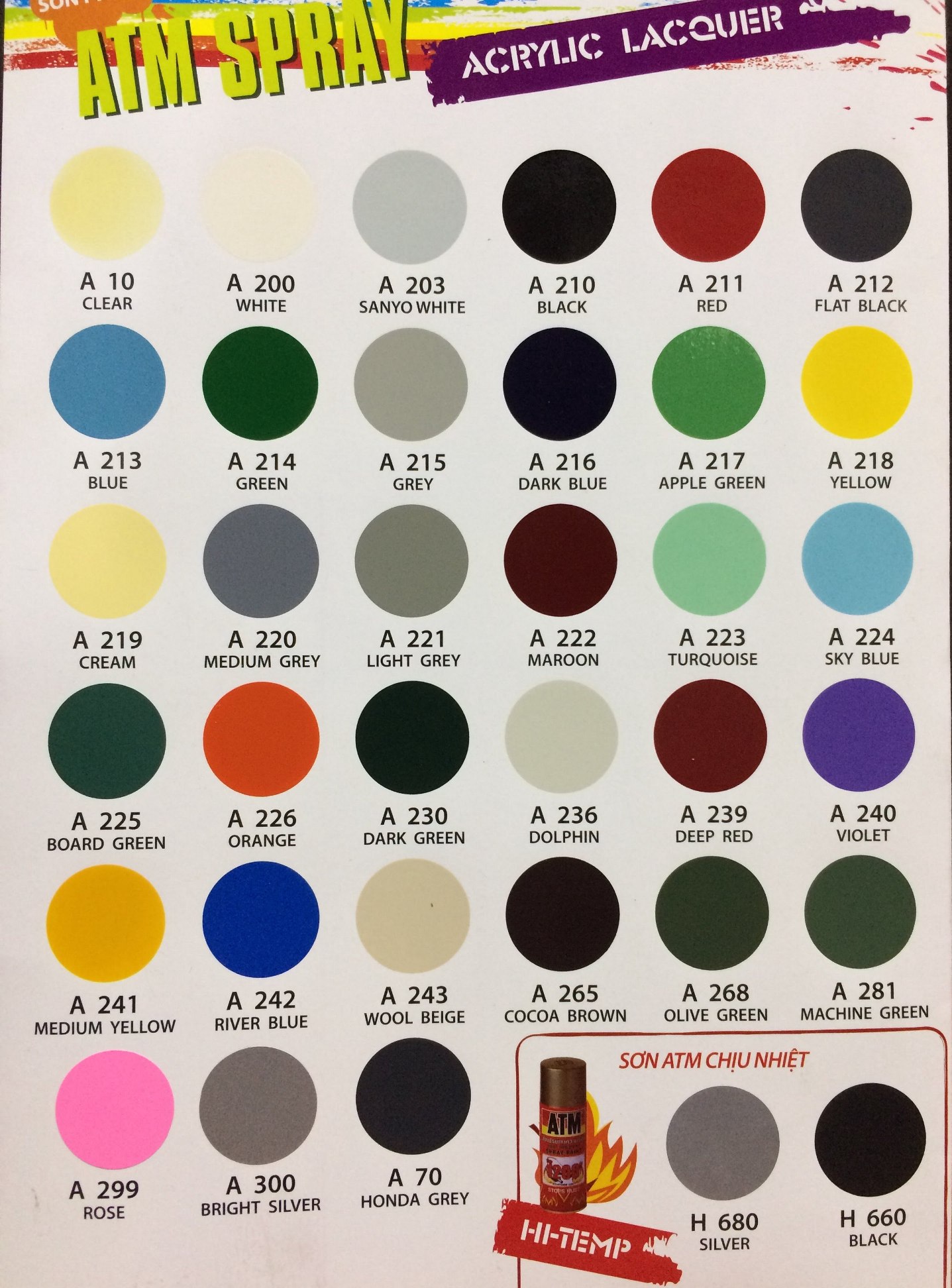 - Sơn Xịt ATM A226 ( Màu Cam ) là hỗn hợp nhựa NC và Acrylic Lacquer phối hợp cùng chất tạo màu đặc biệt , được đóng gói dưới dạng bình xịt cầm tay