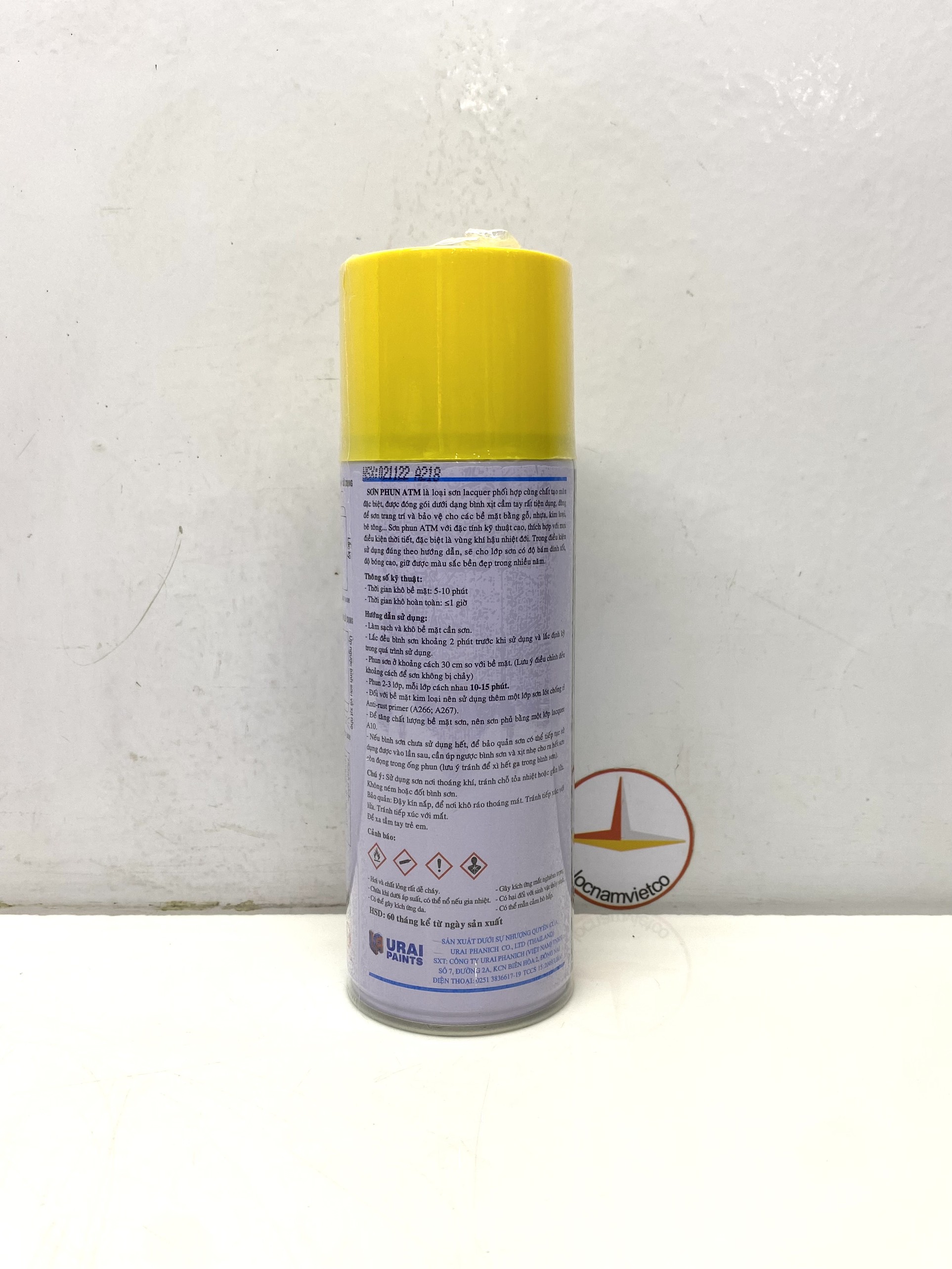 - Nếu bình sơn chưa sử dụng hết, để bảo quản sơn có thể tiếp tục sử dụng vào lần sau, cần úp ngược bình và xịt nhẹ cho ra hết sơn còn đọng trong ống phun (lưu ý tránh để xì hết gas trong bình sơn) Chú ý:Sử dụng sơn nơi thoáng khí, tránh chỗ tỏa nhiệt hoặc gần lửa. Bảo quản sơn nơi có nhiệt độ dưới 40 độ C. Không ném hoặc đốt bình sơn. Bảo quản: Đậy kín nắp, để nơi khô ráo thoáng mát. Để xa tầm tay trẻ em và tránh tiếp xúc với mắt. HSD: 60 tháng kể từ ngày sản xuất. Sản phẩm được phân phối bởi: Công ty TNHH Lộc Nam Việt 1933 QL51, Phước Tân, Biên Hòa, Đồng Nai 0948 79 5588