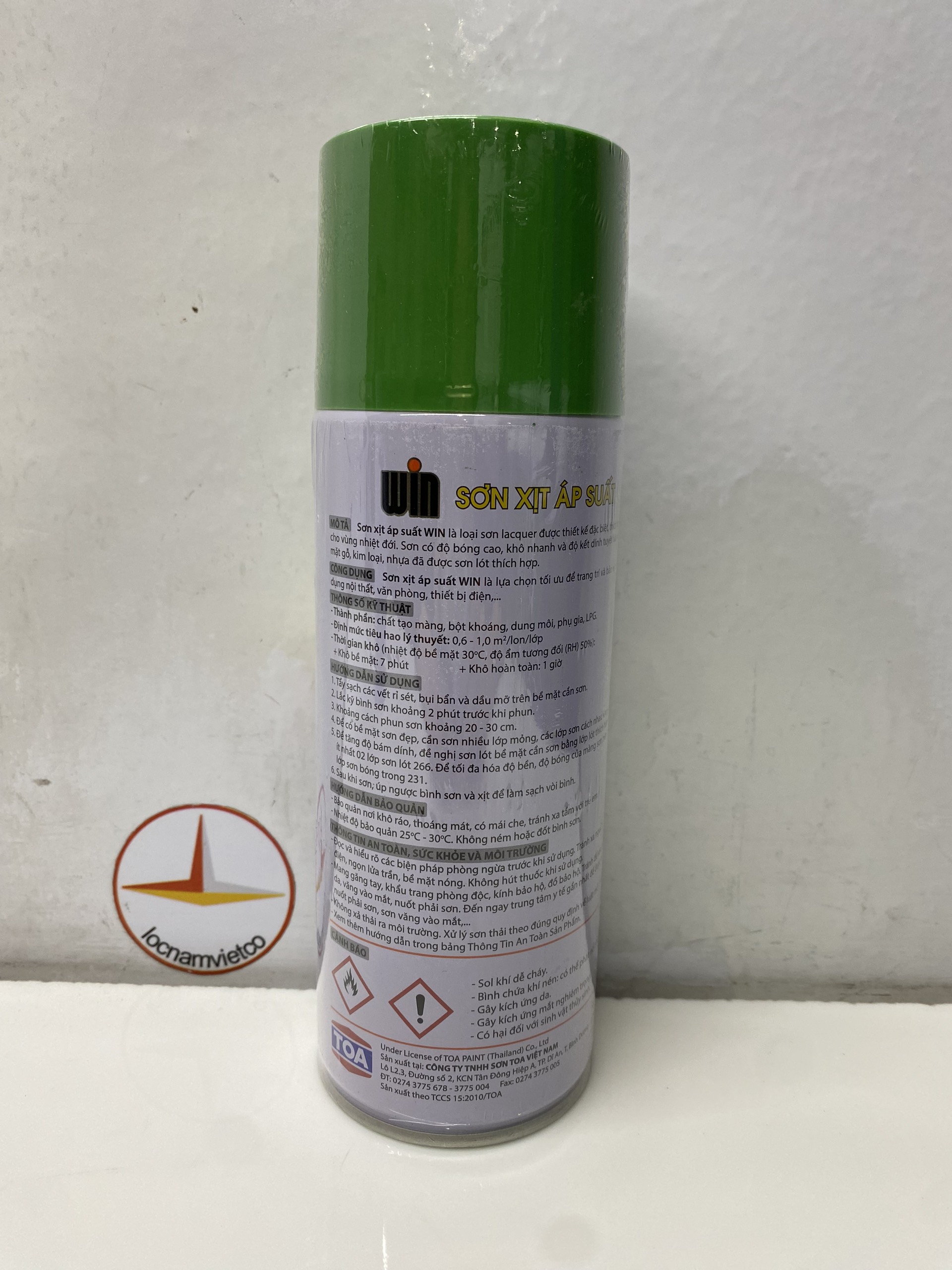 Mua tại TiktokSƠN XỊT WIN MÀU XANH 217 400ML Sơn xịt WIN là loại sơn Lacquer với công thức đặc biệt thích hợp sử dụng cho vùng nhiệt đới. Sơn có độ bóng cao, khô nhanh và độ kết dính tuyệt hảo. Công dụng: Sơn xịt WIN là sự lựa chọn tối ưu để trang trí và bảo vệ cho các vật dụng nội thất, văn phòng, thiết bị điệ Thành phần: Chất tạo màng ; Bột màu ; Dung môi , Phụ Độ phủ lý thuyết:0.6 - 1 m²/lon/lớp (tùy thuộc vào màu) Đóng gói: 400ml/chai; 12 chai/thùng Thời gian khô :