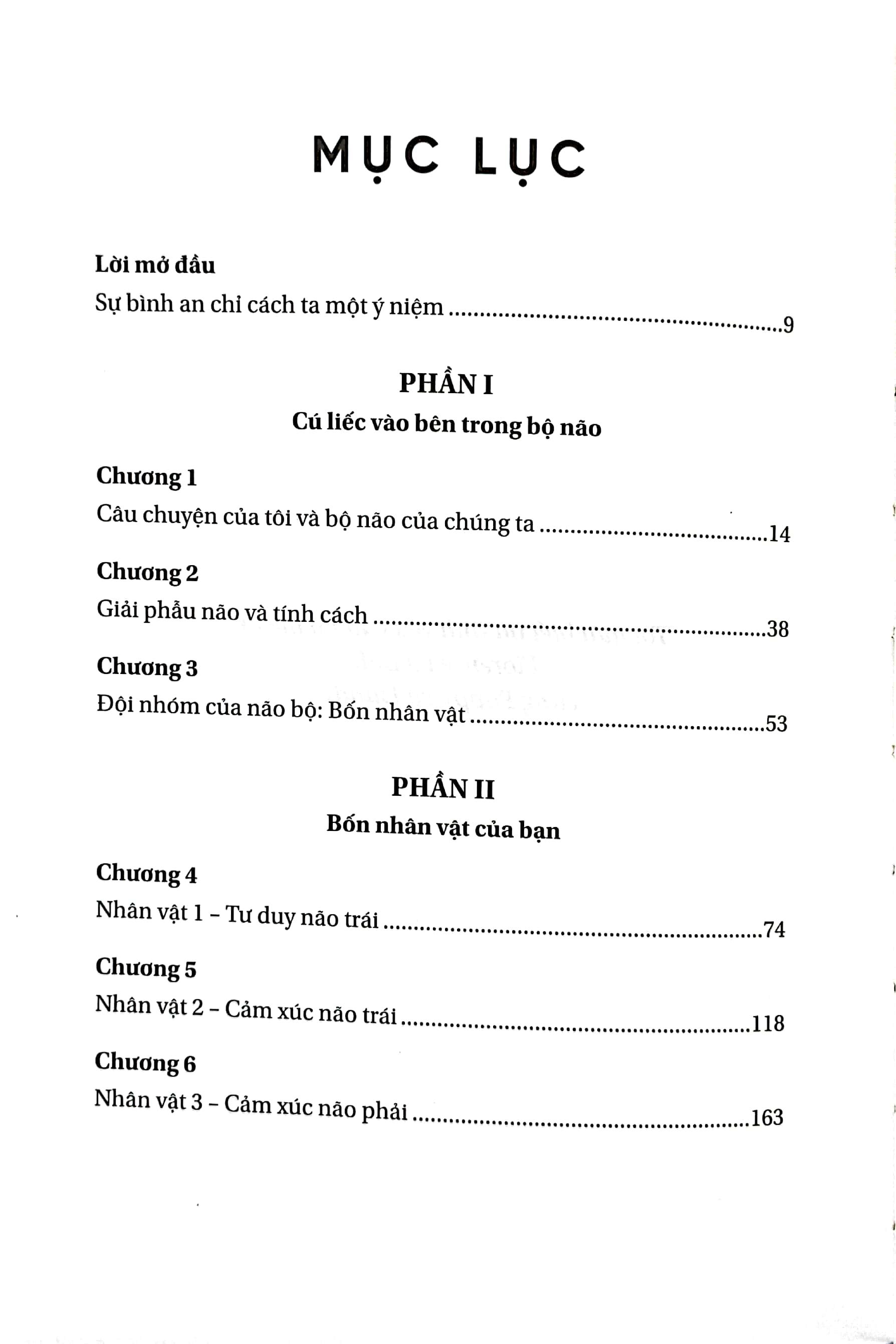 Phần I – Cú liếc vào bên trong bộ não, Phần II – Bốn nhân vật của bạn và Phần III – Bốn nhân vật ngoài hoang dã.