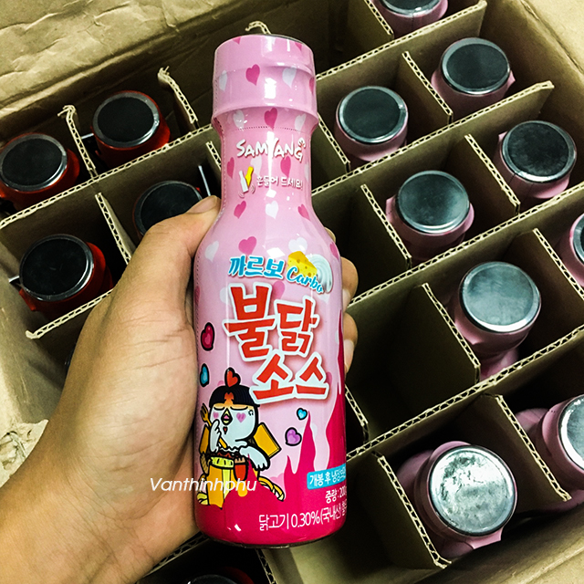 SỐT CHẤM CAY SAMYANG VỊ CARBONARA Là một trong những loại sốt đang được ưa chuộng hiện nay dành cho những ai có thể ăn cay và đã quen với vị cay cực mạnh mà Samyang thường làm. Sốt chấm cay vị carbonara có vị cay truyền thống kèm với vị kem phô mai Carbonara đang rất được ưa chuộng hiện nay. Vì có sự kết hợp với vị kem phô mai Carbo nên khi ăn bạn cảm thấy đỡ cay hơn một chút và có dễ chịu hơn. Tuy nhiên, nếu bạn không ăn cay được nhiều thì cần cân nhắc trước khi dùng nha. Sốt chấm cay Samyang không chỉ dùng để trộn với mì mà còn cực kỳ ngon khi dùng để chấm với thịt nướng, ba chỉ bò nhúng, xúc xích nướng, bánh cuộn trứng, Đặc biệt dành cho những ai ăn cay thì có thể chế biến thành vô số món nè. Hương vị: Vị cay Carbonara Hãng sản xuất: Samyang - Hàn Quốc Sốt chấm Samyang được đóng thành dạng chai nhựa PET phù hợp vệ sinh an toàn thực phẩm theo quy định của Bộ Y Tế và có nắp bật tiện lợi. Khi dùng xong, phần còn lại bạn có thể đậy nắp và bảo quản chúng trong ngăn mát tủ lạnh là được. Với thân chai thon gọn giúp bạn cầm và bảo quản tiện lợi hơn. Cùng với thiết kế bao bì bắt mắt. Bên trong chai là nước sốt chấm Samyang vị Carbonara đậm đà thơm ngon không thể cưỡng lại được. Sảm phẩm được sản xuất bởi hãng Samyang và nhập khẩu từ Hàn Quốc về Việt Nam.