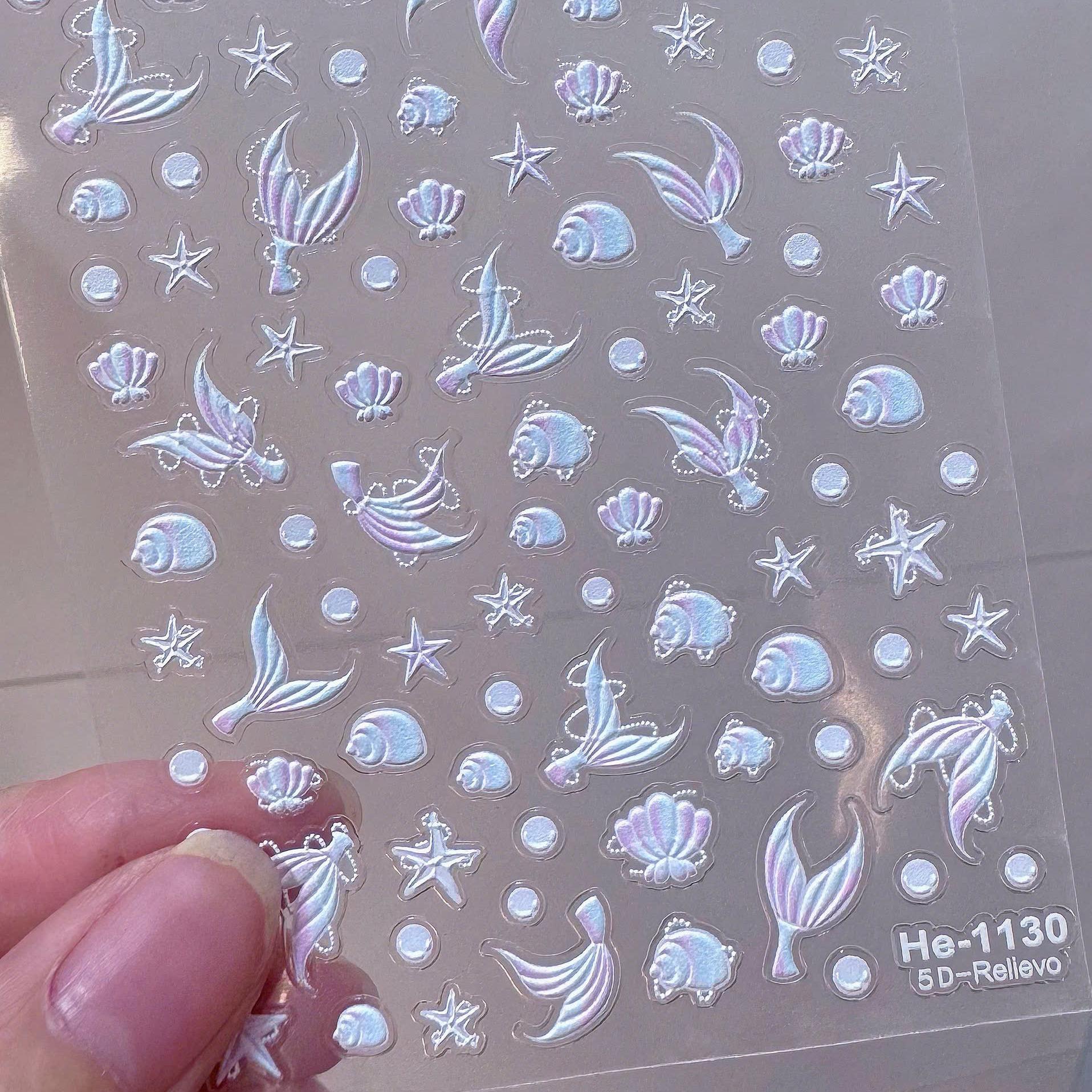 ✨Sticker 5D Biển Cả Hình Sao Sò Ốc Biển Cá Heo Nhiều Màu Pastel Làm Nail Du Lịch Mùa Hè, Hình Dán Móng Ngọc Trai BLUE SEA Sứa Biển Nổi Mix Kiểu