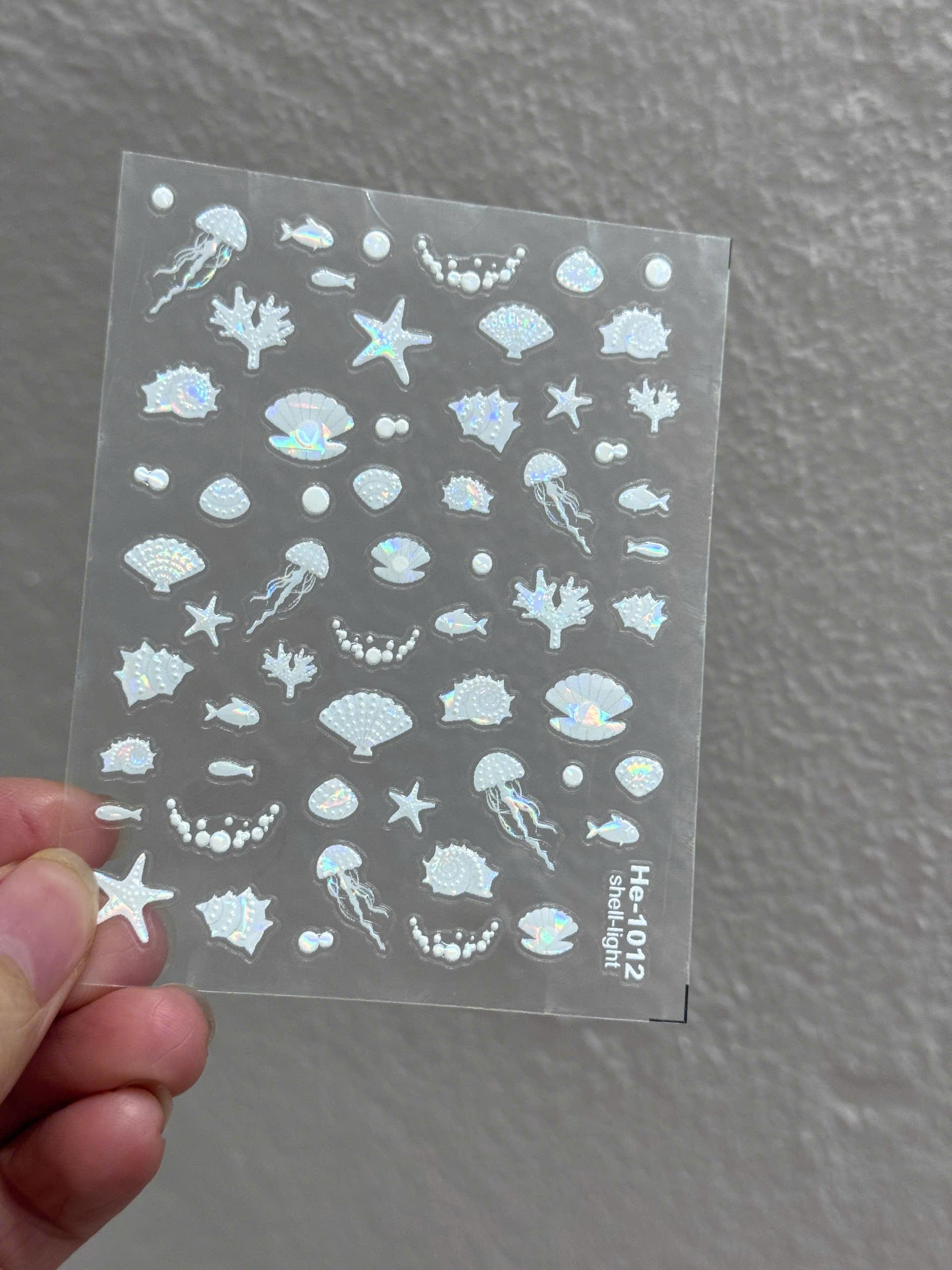 - Tên sản phẩm: Sticker 5D biển cả hình sao, sò, ốc, ngọc trai, cá heo, sứa biển