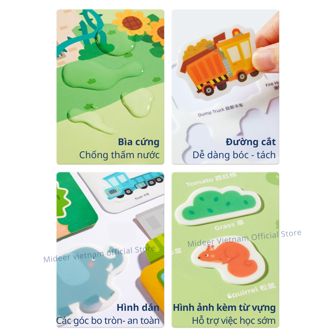 - Song ngữ (Tiếng Trung và Tiếng Anh), hỗ trợ việc học sớm. Sticker dán cho bé dùng được nhiều lần Mideer Reusable Jelly Sticker Set dán được trên nhiều bề mặt