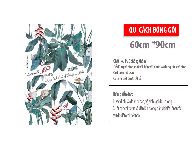 Video Giải thích quy cách đóng gói và cách dán sản phẩm Decal dán tường lá cây SK9239 Kích thước sản phẩm khi đóng gói :01 tấm 60*90 cm Kích thước sau khi dán :