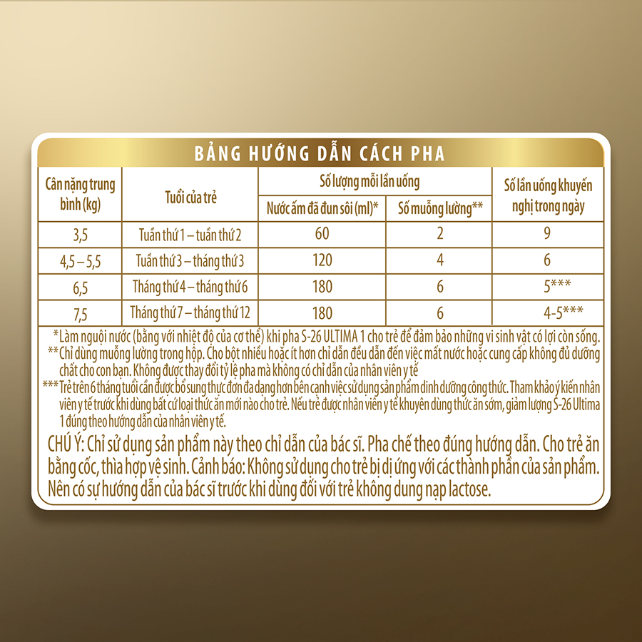 - Rửa sạch tay trước khi pha S-26 ULTIMA 1 cho trẻ.