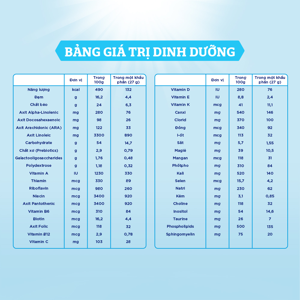 - MFGM: là một màng giàu dinh dưỡng bao quanh giọt chất béo được bài tiết vào sữa, được chứng minh đóng vai trò quan trọng trong việc cải thiện chức năng nhận thức, khả năng miễn dịch và sức khỏe đường ruột của trẻ.