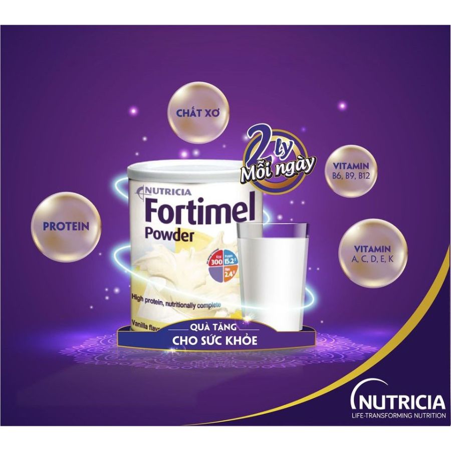 SỮA BỘT FORTIMEL POWDER VANILLA 335g – DINH DƯỠNG HOÀN CHỈNH GIÀU PROTEIN Sữa bột Fortimel Powder – Một trong những sản phẩm của hãng Nutricia Hà Lan được nhập khẩu trực tiếp nguyên hộp về Việt Nam, với hàm lượng chất dinh dưỡng đầy đủ đặc biệt hàm lượng đạm cao giúp bệnh nhân ung thư hồi phục nhanh chóng, cải thiện thể trạng cho người bệnh suy dinh dưỡng, người cao tuổi, người mới ốm dậy. Sữa Fortimel Powder là sản phẩm uy tín trên thị trường được các bác sĩ khuyên dùng, người tiêu dùng tin tưởng lựa chọn. Ngày nay, nhu cầu bổ sung dinh dưỡng là một chủ đề luôn nhận được sự quan tâm của nhiều người. Đặc biệt, đối với người bệnh ung thư thì nhu cầu dinh dưỡng đóng một vai trò quan trọng trong suốt quá trình điều trị và phục hồi bệnh. Vì vậy, sau nhiều năm nghiên cứu và thử nghiệm lâm sàng, hãng Nutricia Hà Lan đã cho ra đời sản phẩm sữa cao năng lượng Fortimel Powder nhằm đáp ứng nhu cầu cung cấp dinh dưỡng đầy đủ và cân đối dành cho người ung thư. Giới thiệu sản phẩm sữa bột Fortimel Powder Sữa Fortimel Powder có chứa thành phần dinh dưỡng đặc biệt như hàm lượng chất đạm cao, bên cạnh đó là các vitamin và khoáng chất phù hợp với người ung thư, người sau phẫu thuật, người mắc các bệnh lý liên quan đến dinh dưỡng,… đòi hỏi nguồn dinh dưỡng tối ưu và đặc hiệu. Sữa Fortimel Powder 335g – Dinh dưỡng hoàn chỉnh giàu Protein Sữa Fortimel Nutricia Vanilla 335g là dòng sản phẩm đặc biệt của Nutricia, với hàm lượng đạm cao nhất (7,6g/100ml; cao hơn 35% so với các dòng sản phẩm khác) và năng lượng cao nhất (1.5kcal/ml) trên thị trường hiện nay giúp người lớn, người gầy, người yếu, người già, phụ nữ có thai và sau khi sinh, trước và sau mổ, người ung thư bổ sung dinh dưỡng để hồi phục sức khoẻ nhanh chóng. Một điểm nổi trội hơn các loại sữa khác đó là thành phầm đạm trong Fortimel là hỗn hợp đạm whey (65%) và đạm casein(35%) nên khi uống vào cơ thể sẽ hấp thu tốt và không bị tồn dư trong dạ dày, tốt cho hệ tiêu hóa, hạn chế các bệnh đường ruột và không gây phản ứng cho bệnh nhân. Thêm vào đó, Sữa  bột Fortimel Nutricia có thành phần chất xơ có tác dụng chống táo bón và cải thiện hệ tiêu hóa cho người bệnh, cùng các thành phần tinh bột, chất béo, khoáng chất, vitamin,… đều phù hợp với nhu cầu cần bổ sung đầy đủ của người bệnh, người suy dinh dưỡng, bệnh nhân phẫu thuật, bệnh nhân ung thư, Vì vậy, đây là sản phẩm được các bác sĩ tại các bệnh viện lớn như bệnh viện Bạch Mai, Việt Đức, 108, Bệnh viện K,…tin dùng và sử dụng cho bệnh nhân. Sữa Fortimel Powder có chứa thành phần cao năng lượng: cung cấp 4.35kcal/g; 100kcal tương ứng khẩu phần 100ml. Đáp ứng nhu cầu dinh dưỡng cao của người bệnh. Sữa Fortimel Powder bổ sung hàm lượng chất đạm (protein) cao: hàm lượng chất đạm trong sữa là 5g trong 100ml (tương ứng với 20% tổng năng lượng. Fortimel Powder là một sản phẩm dinh dưỡng tối ưu giúp cung cấp cũng như bù vào lượng chất đạm bị thiếu hụt do ăn uống không thể cung cấp đủ hoặc do thiếu hụt khi người bệnh gặp phải những vấn đề về trao đổi chất. Sữa Fortimel Powder chứa tới 2.6g chất xơ trong mỗi 100g bột, giúp cung cấp 0.6g cho mỗi 100ml, chiếm 1% tổng năng lượng. Bổ sung chất xơ trong thành phần sữa giúp người dùng có một hệ tiêu hóa khỏe hơn và giúp hạn chế được tình trạng táo bón hiệu quả. Sữa Fortimel Powder chứa hàm lượng vitamin và khoáng chất cao: với mỗi ly sữa 200ml cung cấp từ 7-28% các nguyên tố vi lượng và vitamin, bên cạnh đó là các vitamin B12, canxi và vitamin D sẽ đạt hiệu quả tới 175, 199 và 285%. Vitamin và khoáng chất là những chất thiếu yếu của cơ thể, tham gia vào quá trình chuyển hóa giúp cung cấp năng lượng cho các tế bào, góp phần tăng cường hễ miễn dịch của cơ thể, bảo vệ cơ thể khỏi các tác nhân xấu gây bệnh. Sữa Fortimel Powder còn chứa Choline rất tốt cho hệ tim mạch. Thành phần dinh dưỡng hoàn hảo của sản phẩm sữa bột Fortimel Powder Sữa bột Fortimel Powder cung cấp một thức uống đầy đủ và cân đối về dinh dưỡng, có thể dùng để thay thế bữa ăn hoặc bổ sung thêm vào chế độ ăn hàng ngày.  Năng lượng Sữa bột Fortimel Powder cung cấp năng lượng cao (4.35 kcal/g; 100 kcal trên mỗi khẩu phần 100 ml) đạt yêu cầu dinh dưỡng đầy đủ của bệnh nhân, có thể đáp ứng từ 8 -10 ly với mỗi ly là 200ml (cung cấp 1.600 – 2.000 kcal). Bổ sung 1 – 3 ly 200 ml mỗi ngày, sẽ cung cấp 200 – 600 kcal. Chất đạm (Protein) Protein là rất cần thiết cho việc duy trì hoạt động của các tế bào và hầu hết các hoạt động của cơ thể. Protein là nguồn axit amin thiết yếu, cung cấp nitơ cho quá trình tổng hợp các axit amin khác và các hợp chất chứa nitơ quan trọng cho các chức năng của cơ thể. Hàm lượng Protein có trong sữa bột Fortimel Powder là 10 gam protein trên mỗi ly 200ml, lượn