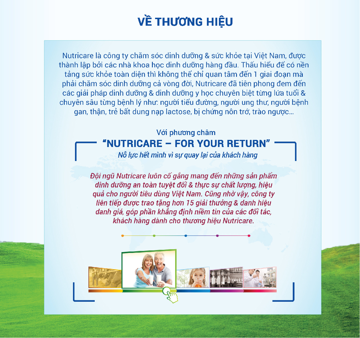 - Cải thiện tiêu hóa, miễn dịch: Bổ sung 5 loại Nucleotides, tăng hàm lượng Colostrum cùng hệ Antioxidant & Kẽm, hỗ trợ hệ miễn dịch & phòng các bệnh nhiễm khuẩn thông thường. Dồi dào chất xơ FOS & Inulin giúp cải thiện hấp thu & tránh táo bón. Sản phẩm được sản xuất bởi Công ty Cổ phần Dinh dưỡng Nutricare - Công ty đạt giải thượng THƯƠNG HIỆU QUỐC GIA 2018 về thực phẩm dinh dưỡng Y Học. Sữa mẹ là thức ăn tốt nhất cho sức khỏe và sự phát triển toàn diện của trẻ nhỏ Lưu ý: sản phẩm này không phải là thuốc và không có tác dụng thay thế thuốc chữa bệnh.