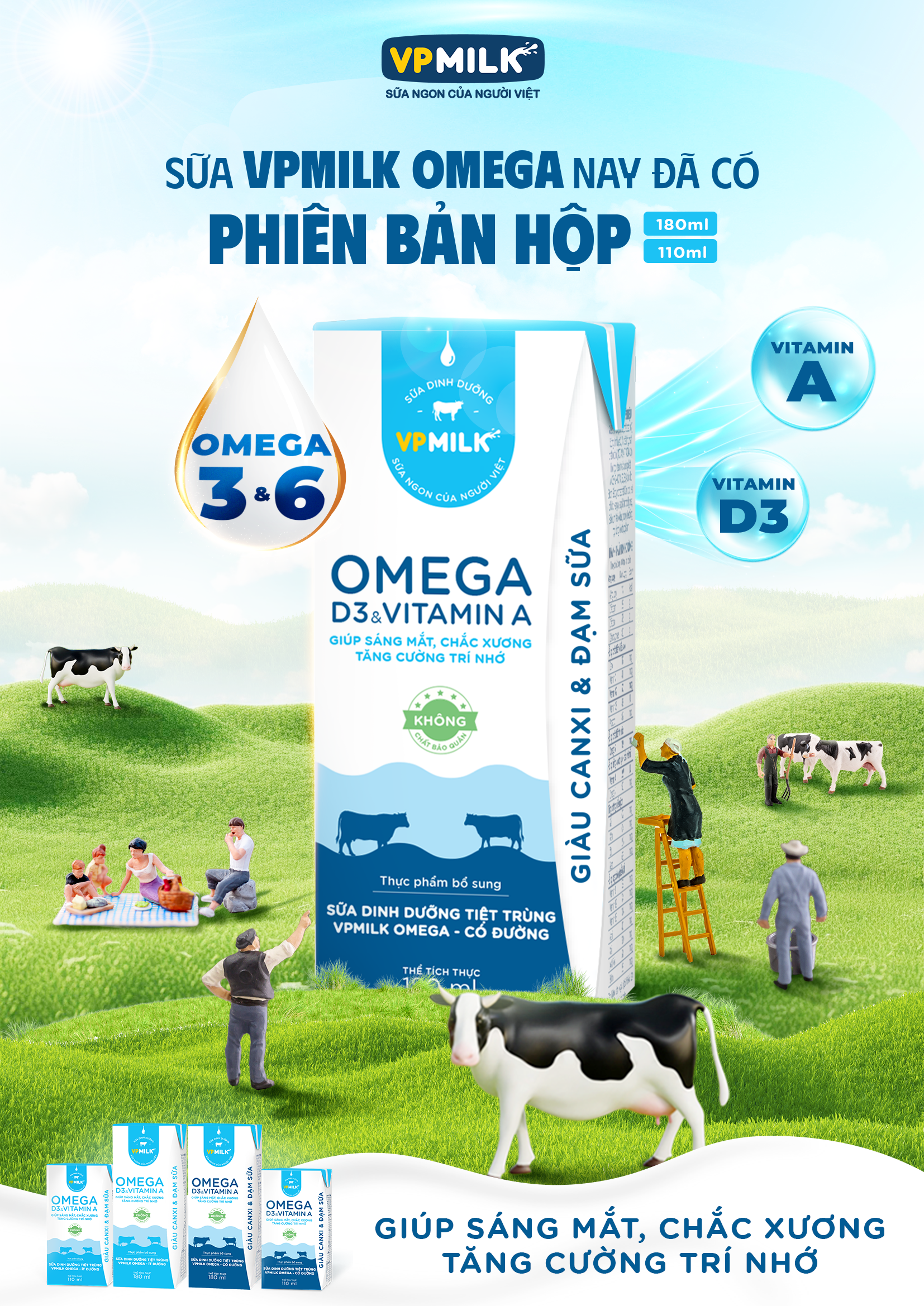 Mua tại TiktokKhám phá sức sống mới cùng sữa Vpmilk Omega hộp! Sự xuất hiện của sữa Vpmilk Omega bịch đã tạo nên cơn sốt trên thị trường! Với tiêu chuẩn FSSC22000 về quản lý chất lượng và đảm bảo ATTP, chúng tôi mang đến cho bạn sự ổn định và chất lượng tuyệt vời mà bạn không thể bỏ qua! Lắng nghe góp ý kiến của khách hàng, Nay VPMilk đã ra mắt sản phẩm Sữa Dinh Dưỡng tiệt trùng Omega dạng hộp. Sữa Vpmilk Omega hộp là lựa chọn đáng tin cậy nhất! Với thành phần dinh dưỡng vượt trội, chúng tôi cam kết đem đến cho bạn sức khỏe và năng lượng dồi dào. HÀM LƯỢNG DINH DƯỠNG: Năng lượng: 60 Kcal/100ml ( Không đường), 72.8 Kcal (ít đường), 76.8 Kcal (có đường) Hàm lượng Protein: 3g Hàm lượng chất béo: 3.2g Hàm lượng Carbohydrates: 4.8g (không đường), 8g (ít đường), 9g (có đường) Hàm lương vitamin A: 161 IU/100ml Hàm lượng Vitamin D3: 30 IU/100ml Hàm lượng canxi: 113 mg/100ml Omega 3: 3 mg/100ml Omega 6: 189 mg/100ml ***Hàm lượng các dưỡng chất dinh dưỡng không thấp hơn 80% giá ghi nhãn.