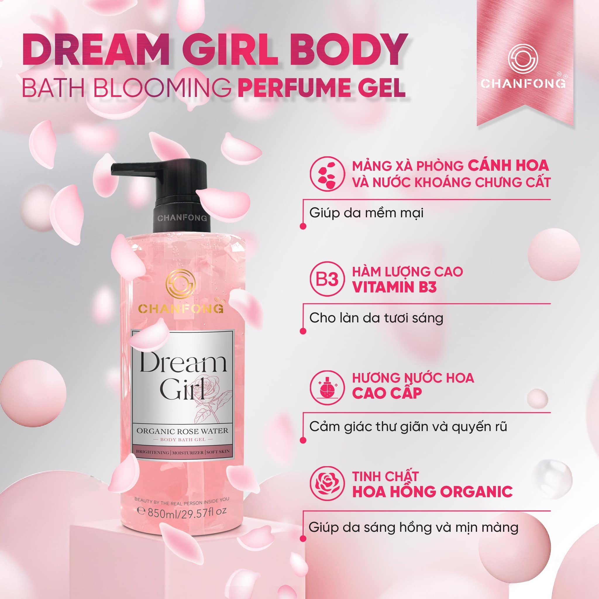 SỮA TẮM GEL CÁNH HOA HỒNG TƯƠI CHANFONG THÁI LAN