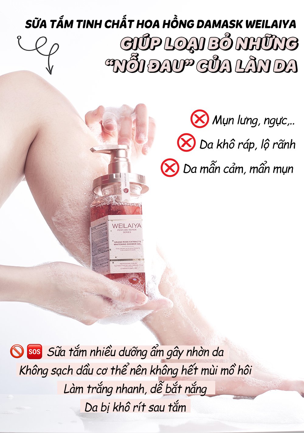 Giới thiệu Sữa tắm trắng da Weilaiya hoa hồng Damask