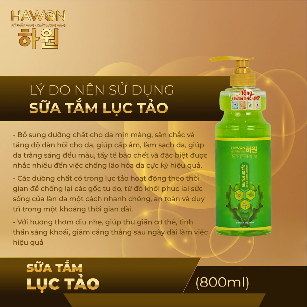 ✨Sữa Tắm Trắng Da Lục Tảo Cao Cấp HAWON - 800ml