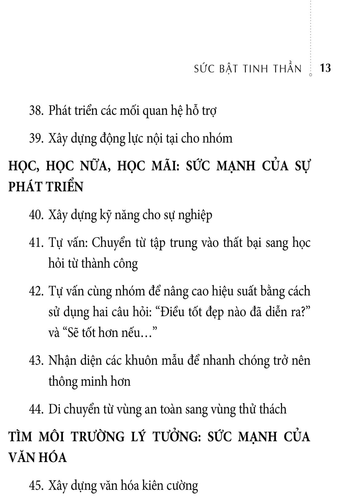 “Sức bật tinh thần” sẽ trình bày 45 kỹ năng và hành động thiết thực giúp bạn có được phẩm chất này một cách dễ dàng và hiệu quả. Và mặc dù được viết dựa trên cơ sở là các nghiên cứu, chúng tôi cũng hướng đến tính thực tiễn cao để bạn có thể chọn cho m.ình hướng đi riêng.