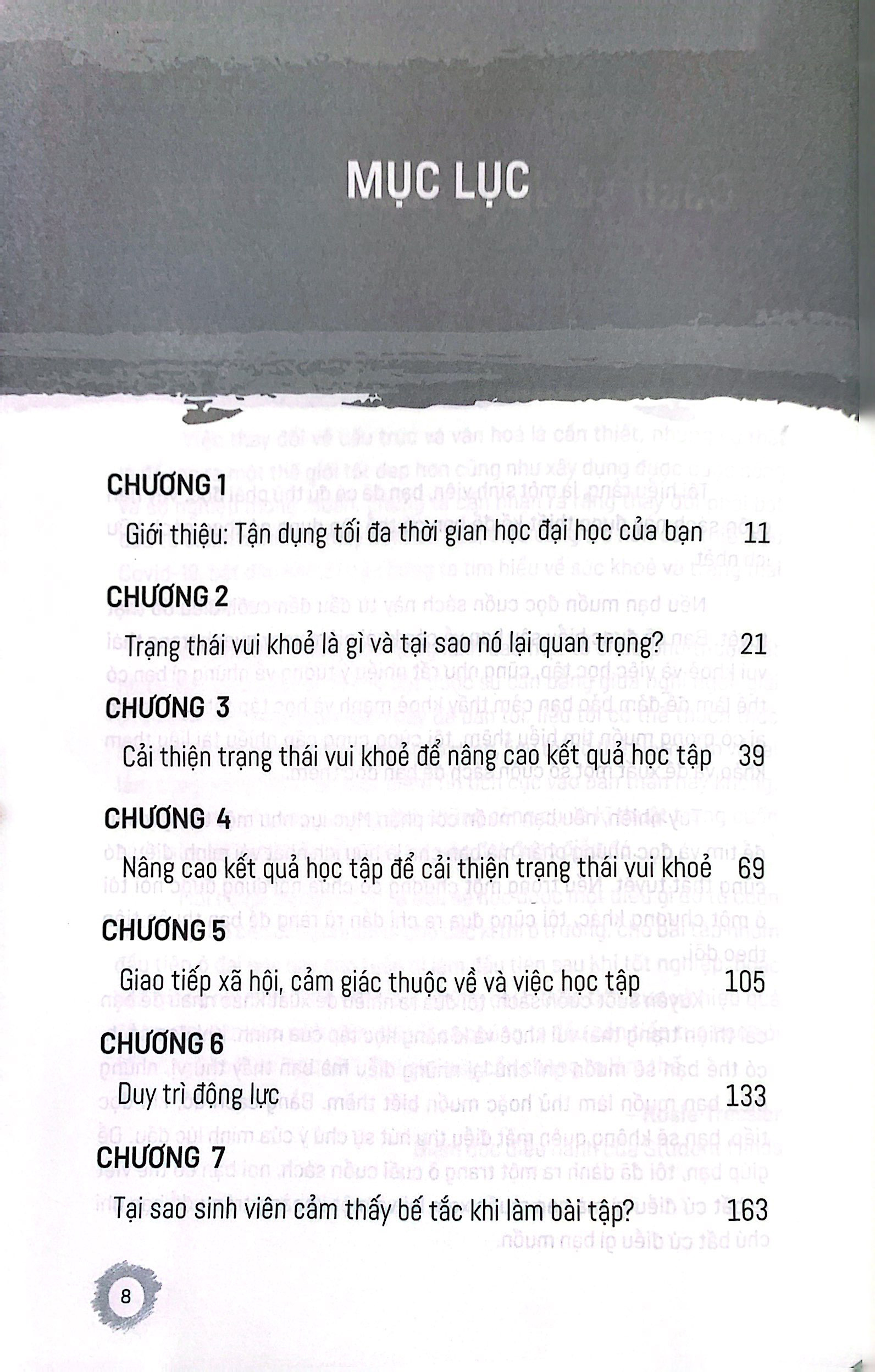 Điều gì đúng với trạng thái vui khỏe thì đúng với việc học và khả năng học tập. Ngay cả khi biết rằng kĩ năng, hiểu biết và năng lực là những thứ có thể cải thiện được, thật khó để tìm ra động lực để thực sự nỗ lực, rèn luyện hay tìm kiếm sự trợ giúp. Trong cuốn sách này, ta sẽ cùng khám phá những cách thức khác nhau để vừa nâng cao trạng thái vui khỏe, vừa cải thiện kết quả học tập của bạn. Bạn hoàn toàn có thể cùng lúc đạt được cả hai yếu tố này.