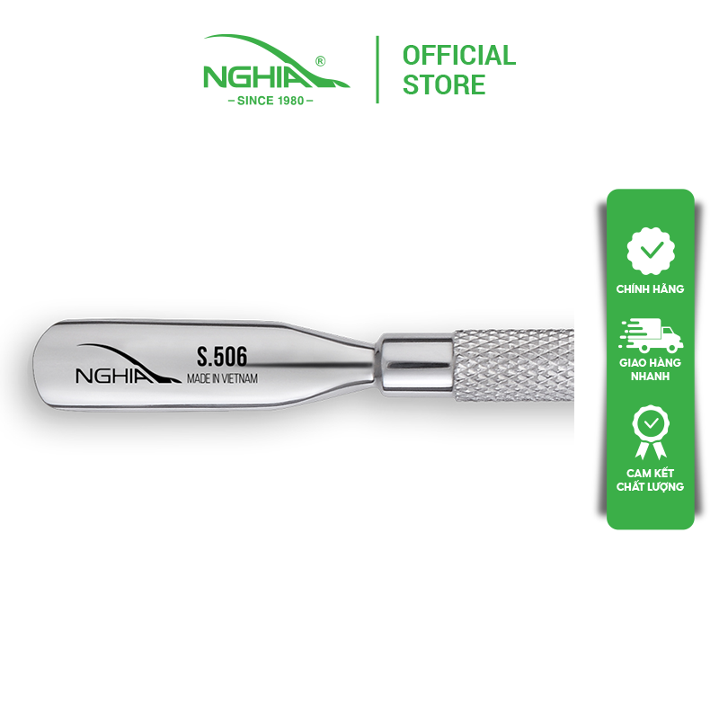 Sủi Da S506 - Kềm Nghĩa là dụng cụ hỗ trợ chăm sóc móng có 1 đầu sủi dùng để đẩy tế bào chết, làm bong tróc các vùng da thừa thiết kế kiểu dáng phù hợp với bàn tay người Châu Á 1 đầu nhọn, 1 đầu bầu, cán cầm tròn có vân.Chất liệu chính của tất cả các dòng sủi da Kềm Nghĩa đều là thép không gỉ nên không bị gỉ sét khi chạm nước và hấp tiệt trùng.